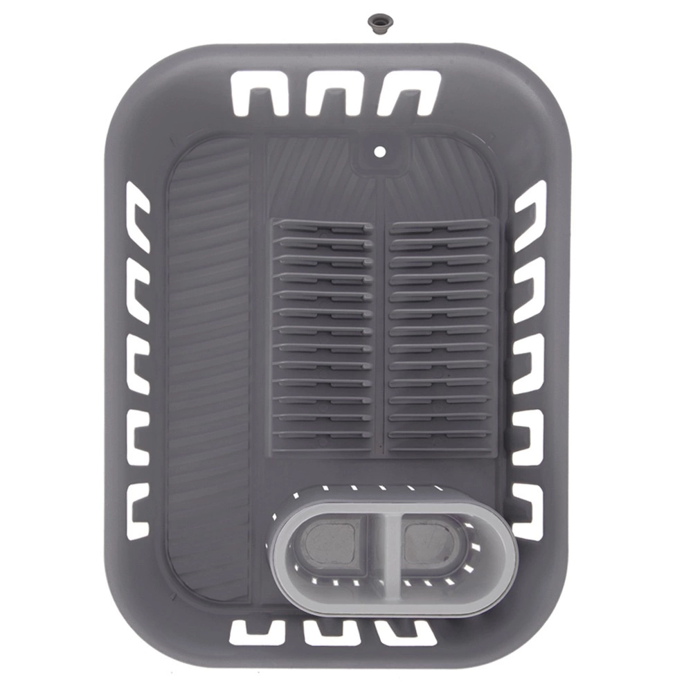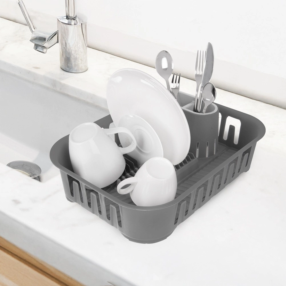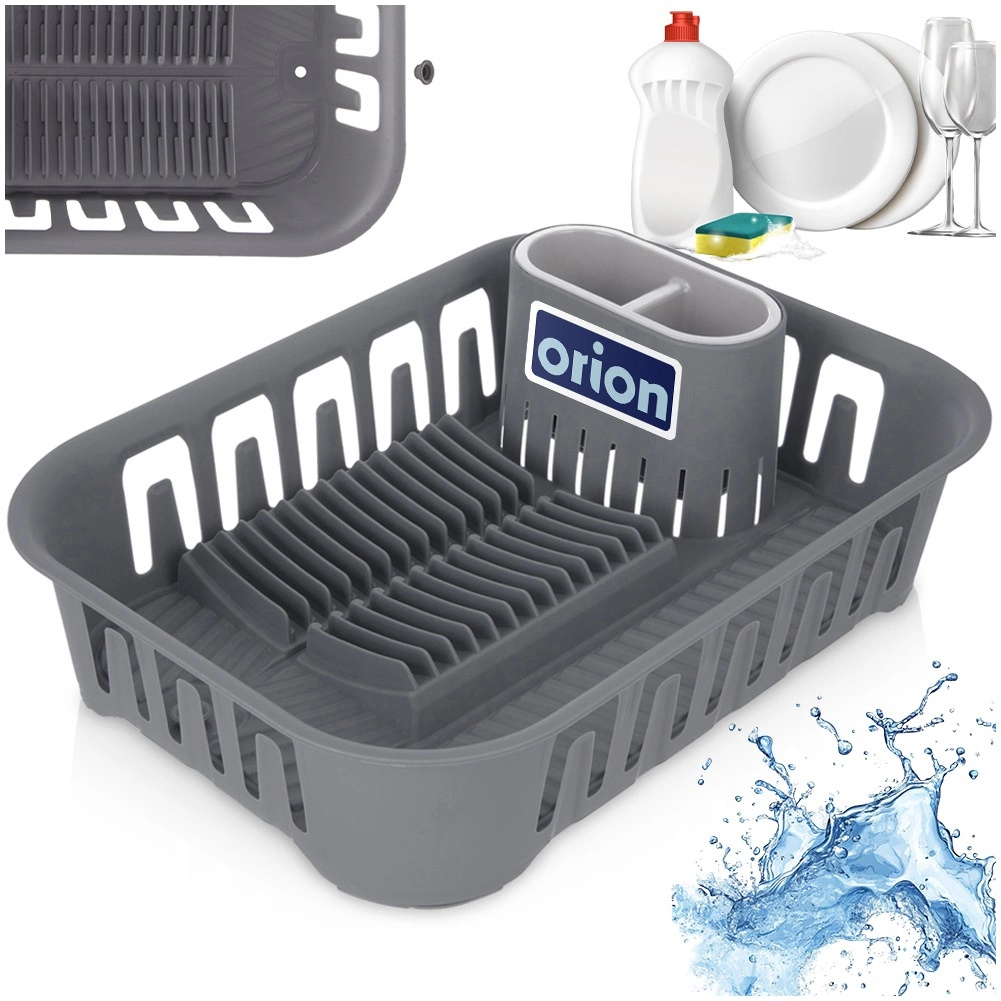 Priročen odcejevalnik za posodo v elegantni sivi barvi olajša sušenje opranih krožnikov, skodelic in pribora, hkrati pa zaščiti kuhinjski pult pred vodo. Ima premišljeno dno z integriranim odtokom in zamaškom, zato ne potrebujete dodatnega pladnja. Priložen je odstranljiv predal za jedilni pribor z dvema prekatoma za udobno razvrščanje.
