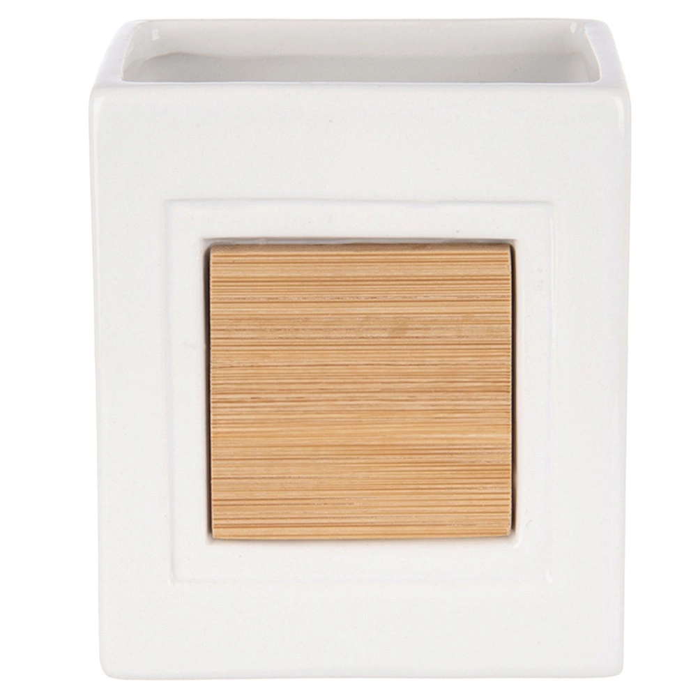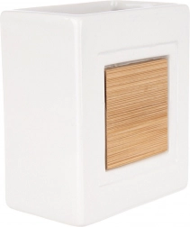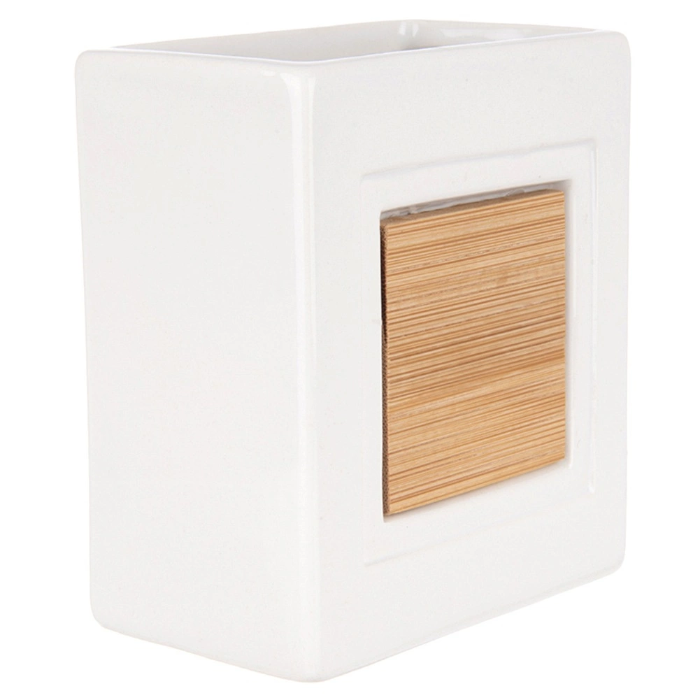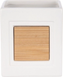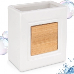 Ta stilski lonček je idealen za vsako kopalnico. Združuje odporno dolomitno keramiko z naravnim bambusom, zato deluje čisto in hkrati domače. Odprti zgornji del omogoča pregledno shranjevanje ščetk, paste in kozmetičnih čopičev.