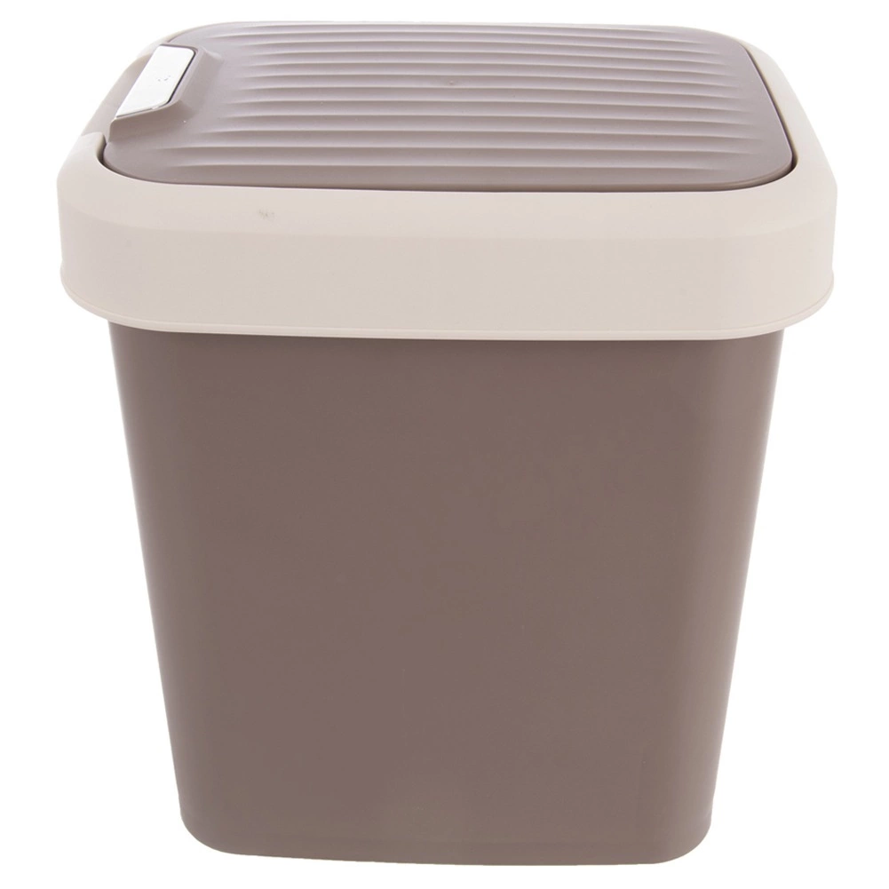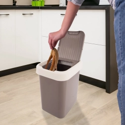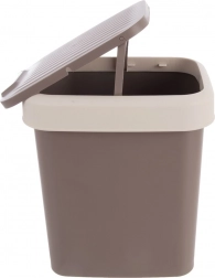 Praktičen in eleganten koš za odpadke s prostornino 12 l je idealen za vsakodnevno zbiranje manjših odpadkov v gospodinjstvu in pisarni. Zaradi kompaktnih mer 27 × 22 × 31 cm ga zlahka postavite na tla, na kuhinjski pult ali v omarico. Gladka plastična površina v rjavo-kremni kombinaciji je enostavna za vzdrževanje in se poda večini interierjev.