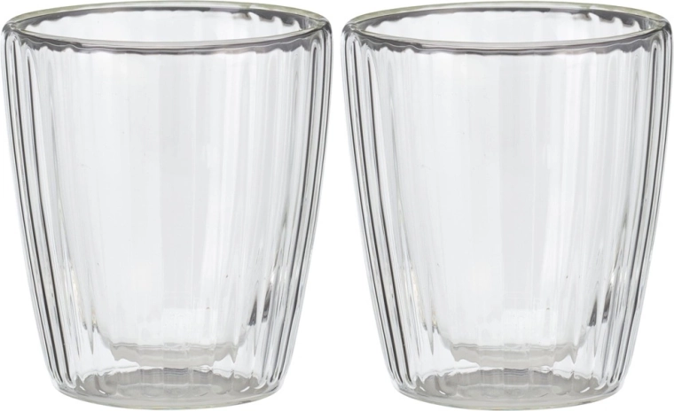 Set vsebuje 2 kozarca z merami 8,5 × 8,5 × 9,5 cm in prostornino 230 ml. Izdelano v skladu z evropskimi standardi kakovosti.