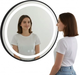 Stensko ogledalo MODERNHOME se odlično poda tako modernim kot klasičnim interierjem. Njegov subtilen LED svetlobni prstan poudari linije kopalnice in zagotovi prijetno svetlobo brez bleščanja. Premer 80 cm ponuja dovolj veliko površino za udobne vsakodnevne rituale.