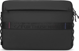 ROG Slash Sleeve 4.0 združuje minimalističen črn videz z maksimalno funkcionalnostjo. Zahvaljujoč čvrstemu oblazinjenju in vzdržljivim materialom ščiti prenosnik pred praskami in manjšimi udarci, medtem ko vodoodbojna obdelava pomaga pri zaščiti pred rahlo vlago. Tanek dizajn olajša nošenje v roki in vstavljanje v nahrbtnik.