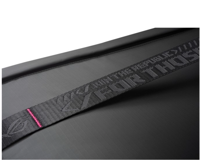 Praktičen sprednji žep na zadrgo sprejme polnilec, kable in drobne dodatke. Premišljene podrobnosti, kot so kakovostne zadrge z vlečniki in diskretni ROG elementi, poudarjajo vrhunski vtis in vsakodnevno uporabnost.