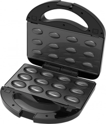 V paketu prejmete žar ploščo, ploščo za vaflje in ploščo za piškote v obliki lešnikov. Nelepljiva površina olajša čiščenje, kompaktne mere 22 × 22 × 8,5 cm prihranijo prostor, dolžina kabla 65 cm pa olajša postavitev na kuhinjski pult.