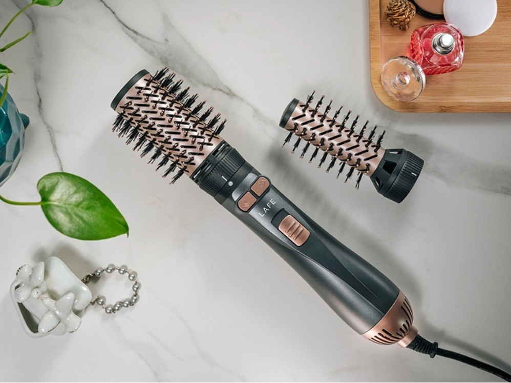LAFE Sleek & Shine Styler je vsestranska rotacijska vročevodna krtača, zasnovana za udobno domače sušenje in oblikovanje. Združuje sušenje in stiliranje v en korak, zato prihrani čas ter hkrati podpira zdrav videz las zahvaljujoč ionizacijski tehnologiji, ki zmanjšuje naelektrenost in pusti pričesko gladko in sijočo.