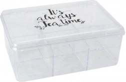 Ohranite red v kuhinji s praktičnim organizatorjem za čaj. Lahek, a čvrst material in tesno zapiranje pomagata ohraniti svežino in aromo čajnih vrečk. Zahvaljujoč šestim ločenim predalčkom zlahka razvrstite različne vrste čajev brez mešanja vonjav.