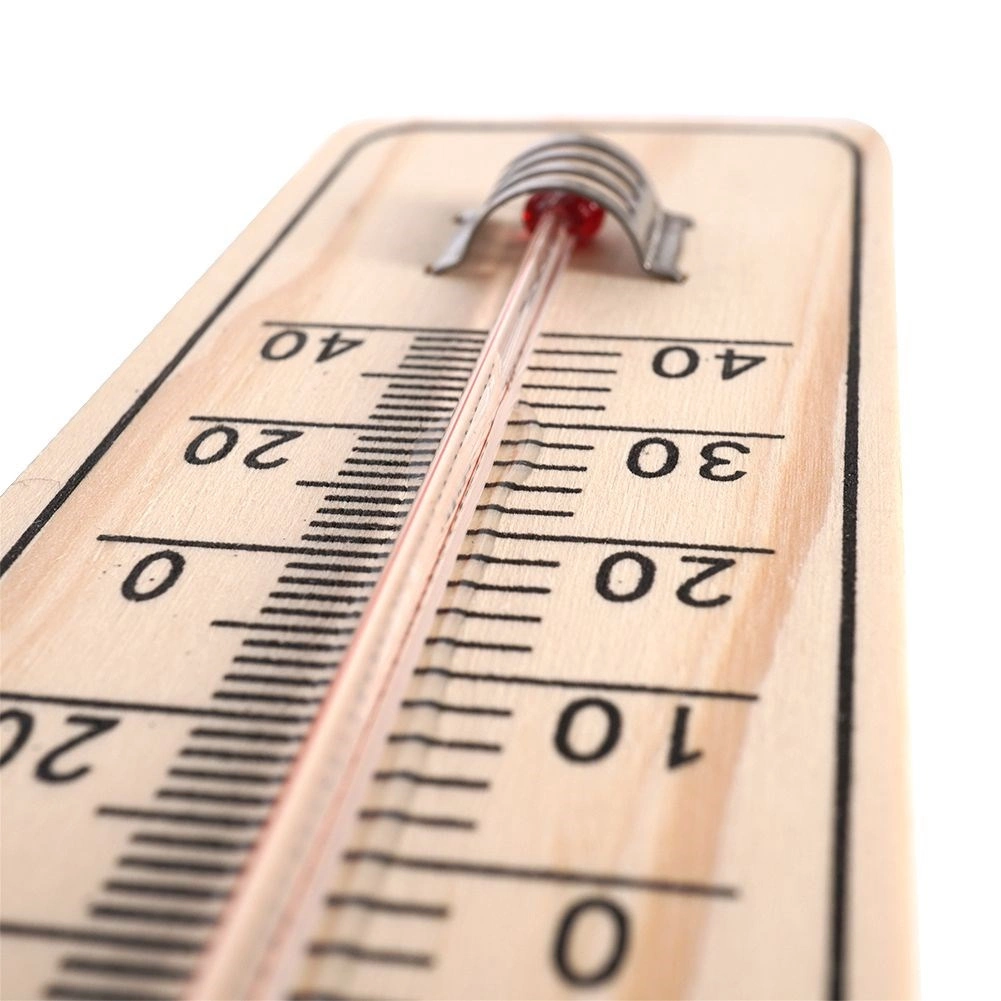 Robustno ohišje iz odpornega MDF in steklena kapilara z barvno tekočino sta zaščitena s kovinsko sponko. Praktično obešalno uho omogoča enostavno montažo na steno brez zapletenega orodja. Temperaturno območje od -40 °C do +50 °C (-40 °F do +120 °F) pokriva običajne celoletne razmere.