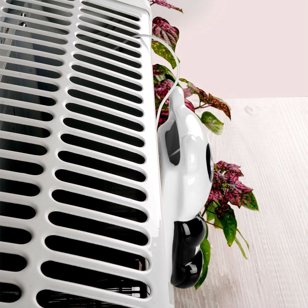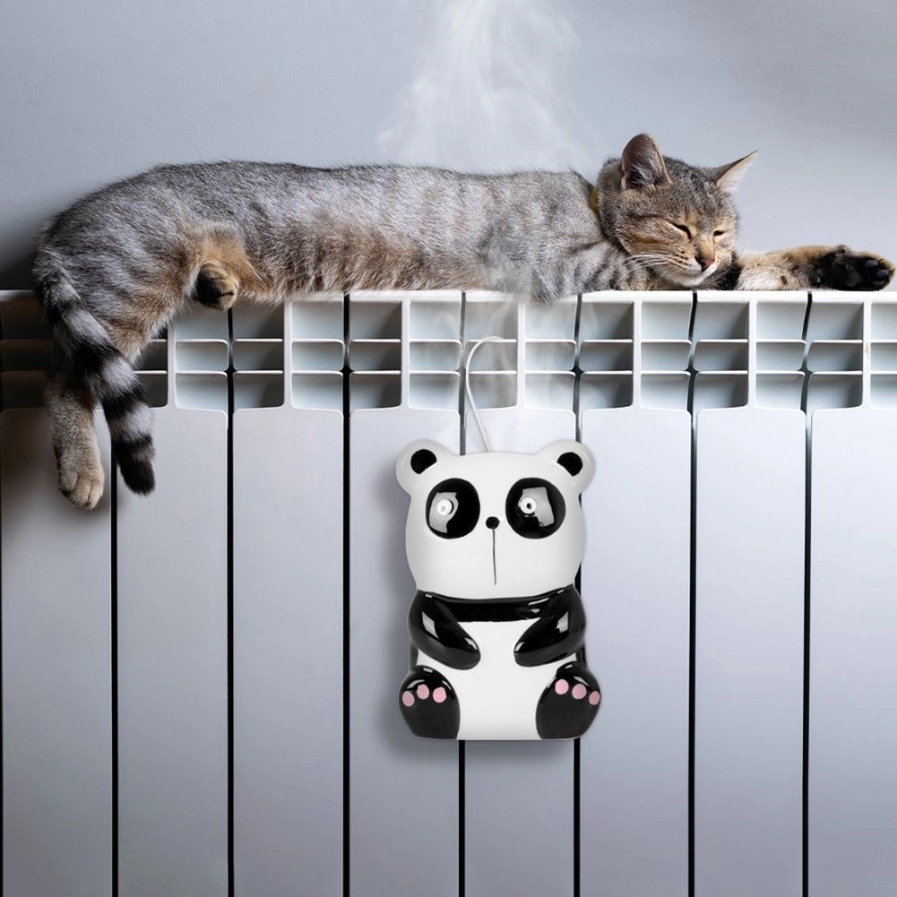 Elegantni in igrivi dodatek za notranje prostore, ki na naraven način izboljšuje klimo v prostoru. Keramični vlažilnik v obliki pande obesite na radiator s pomočjo kovinskega kavlja in napolnite z vodo. Ko se radiator segreje, voda začne nežno izhlapevati in se poveča vlaga zraka, kar pomaga proti suhemu nosu, razdraženi koži in utrujenim očem.