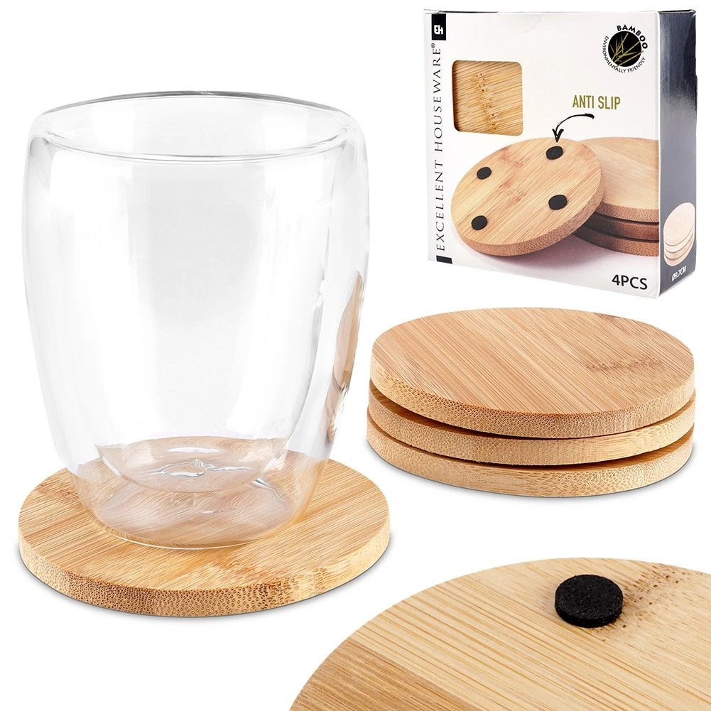 Vsak podstavek ima premer 9,7 cm in višino 0,7 cm, kar je idealna velikost za skodelice, kozarce in skodelice za čaj. Spodnje filc nogice preprečujejo drsenje in ščitijo pohištvo pred praskami. Bambusov les je lahek, čvrst, se hitro suši, ne vpija vonjav in dolgoročno ohranja svojo naravno lepoto. Vzdrževanje je preprosto – obrišite z vlažno krpo. Pranje v pomivalnem stroju ni priporočljivo.