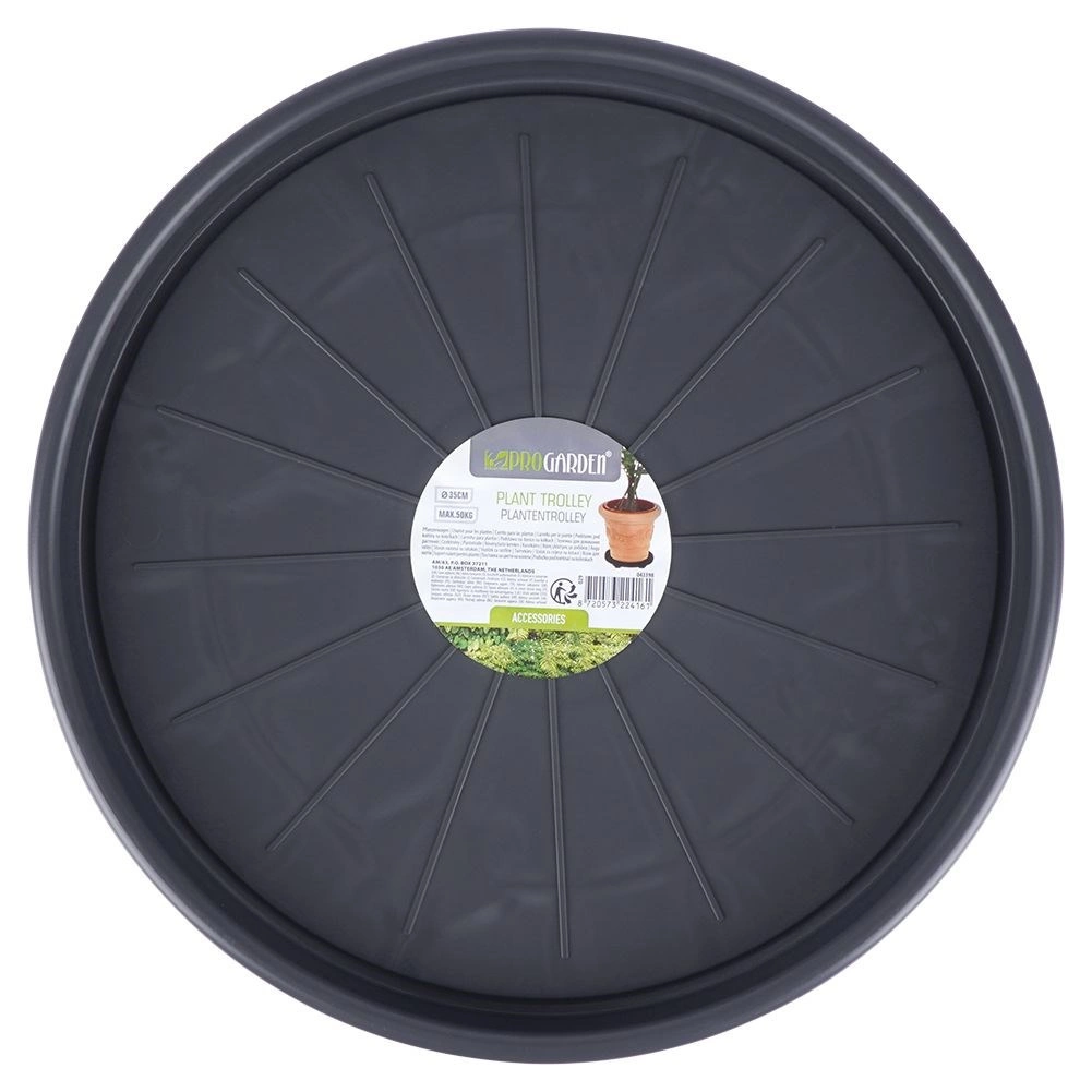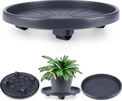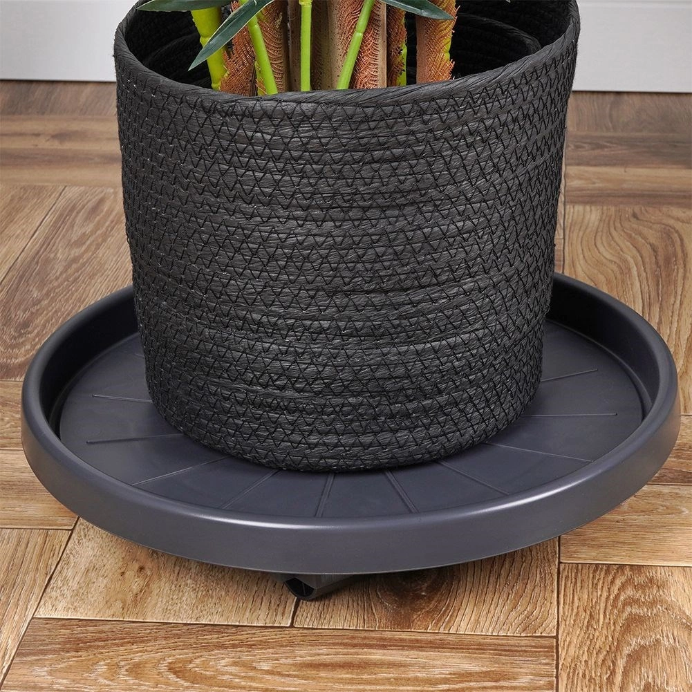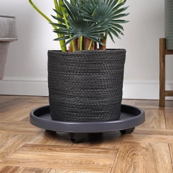 Izdelan je iz kakovostne, odporne plastike v temno sivem odtenku s črnimi kolesci za dolgo življenjsko dobo. Podstavek je univerzalen za uporabo v notranjih prostorih in na prostem – olajša čiščenje, spremembe aranžmajev in sezonske premike rastlin, hkrati pa ščiti površino tal.