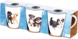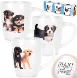 Privoščite si veselje s setom treh keramičnih skodelic z nežnim motivom psov, ki polepša vaše jutranje kave in popoldanske čaje. Zaradi kompaktne prostornine 220 ml so idealne za espresso lungo, cappuccino, kakav in zeliščne čaje. Skodelice so iz kakovostne bele keramike z obstojnim potiskom mladičev in sijajno glazuro.