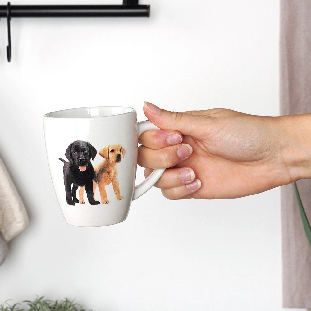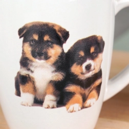 Realistične fotografije psov skodelicam dodajo edinstven čar in iz vašega skodeličnega kave ustvarijo majhen ritual veselja. Odlična ideja za darilo za ljubitelje živali.
