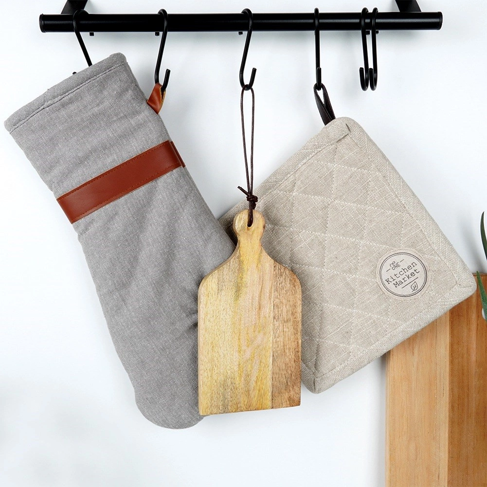 Praktičen ročaj olajša prenašanje, usnjen pašček pa omogoča priročno obešanje. Material je odporen proti vlagi in deformacijam, ne vpija vonjav in se hitro suši (toplotna odpornost do 70 °C). Za pravilno vzdrževanje pomivanje v pomivalnem stroju ni priporočljivo; po uporabi jo obrišite z vlažno krpo in pustite, da se posuši.