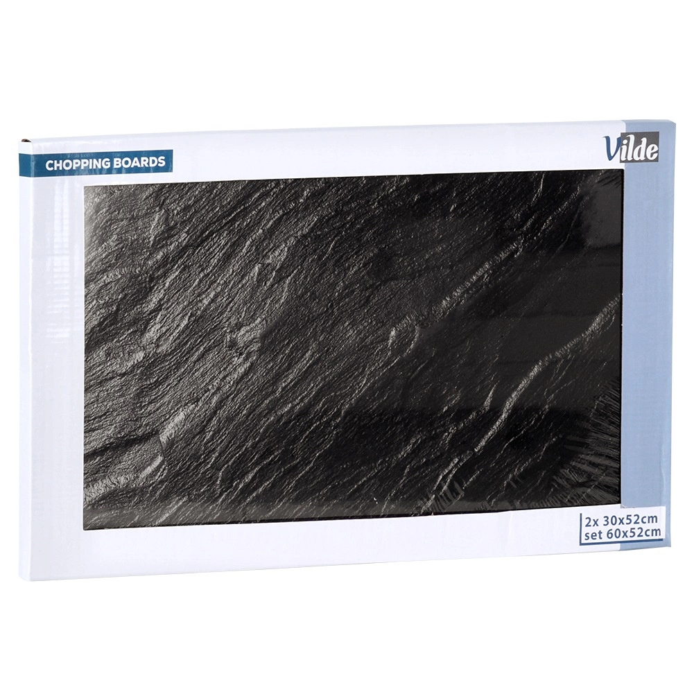 Praktičen komplet dveh steklenih desk, ki služita kot rezalni površini in pokrova za kuhalno ploščo, s čimer ustvarita dodatni delovni prostor tudi v manjši kuhinji. Iz kaljenega stekla z elegantnim kamnitim dekorjem, s nedrsečimi nogicami, odpornostjo na temperature do 150 °C in enostavnim vzdrževanjem.