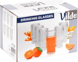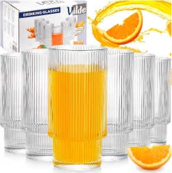 Set kozarcev Vilde prinaša brezčasen dizajn z vertikalnim rebranjem, ki zagotavlja ne le stilski videz, temveč tudi udoben in varen oprijem. Vsak kozarec ima prostornino 320 ml, višino približno 14 cm in premer 7 cm – idealna velikost za vsakodnevno serviranje hladnih pijač.