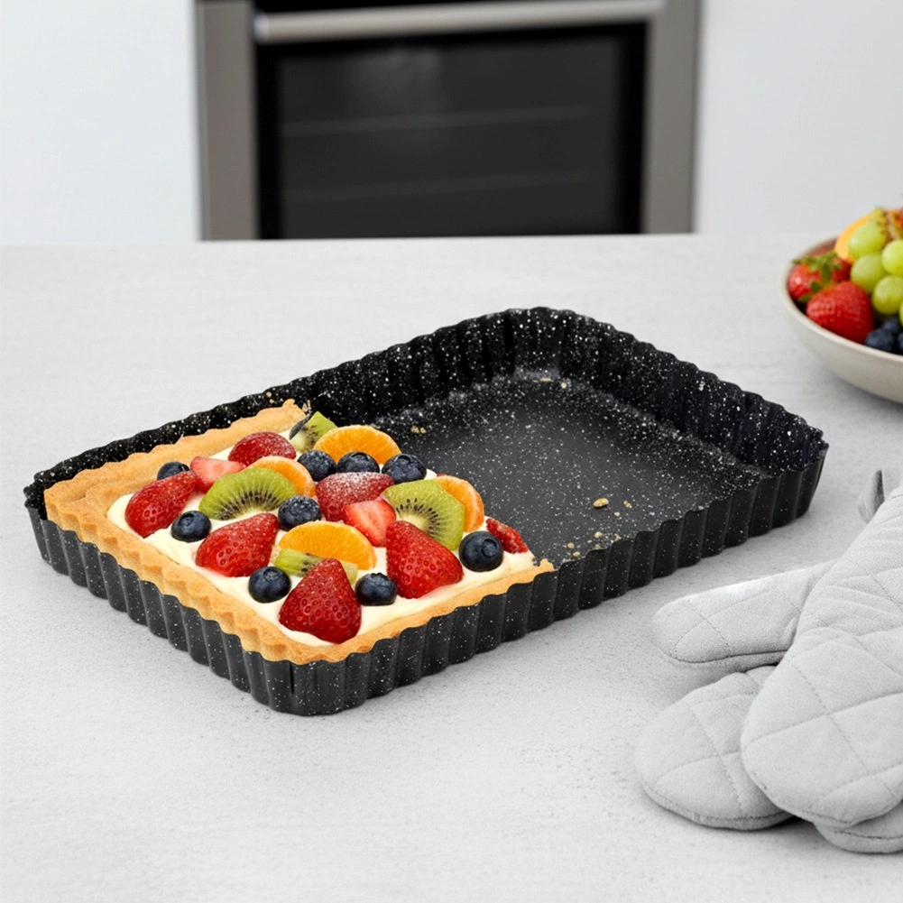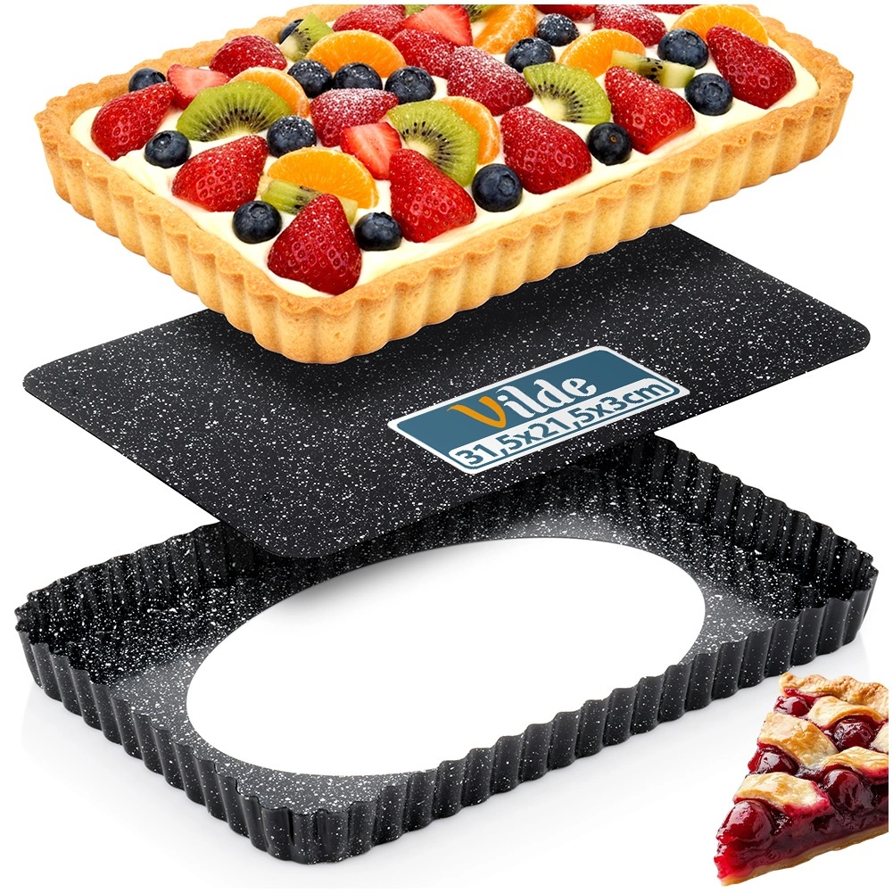 - Univerzalna velikost 31,5 × 21,5 × 3 cm za tarte, pite, quiche in druge sladice