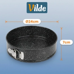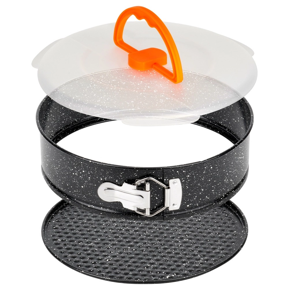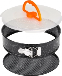 Odkrijte zanesljivo pomočnico za peko tort, sirovih tort in pit. Raztegljiva konstrukcija z zaskočnim zapiralom in odstranljivim dnom zagotavlja, da pečeno testo odstranite brez poškodovanja oblike. Granitna nelepljiva površinska obdelava zmanjšuje tveganje prijemanja in olajša čiščenje.