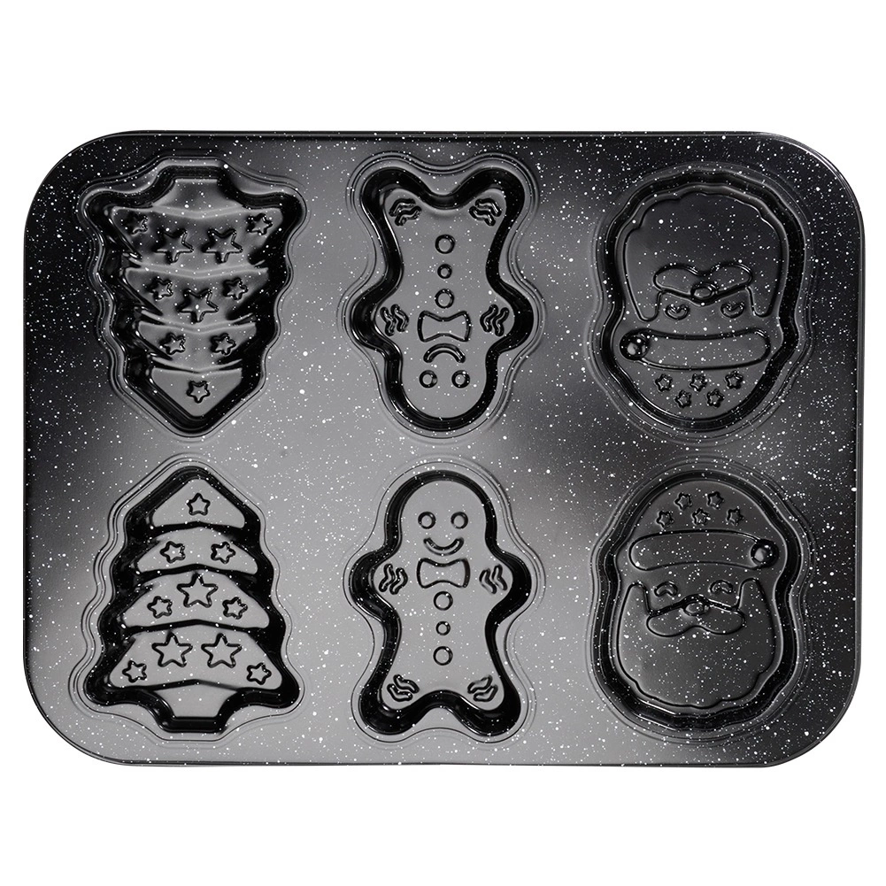 Odkrijte veselje do božične peke z modelom, ki vaše testo oblikuje v popolno dodelane motive. Neprijemljiva granitna plast zagotavlja enostavno odstranjevanje brez prijemanja tudi z minimalno količino maščobe ter enakomerno zapečen vsak kos.