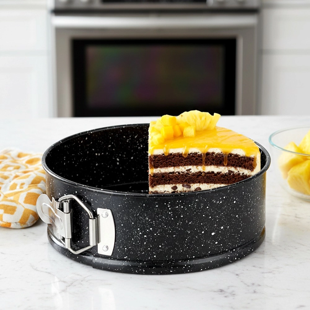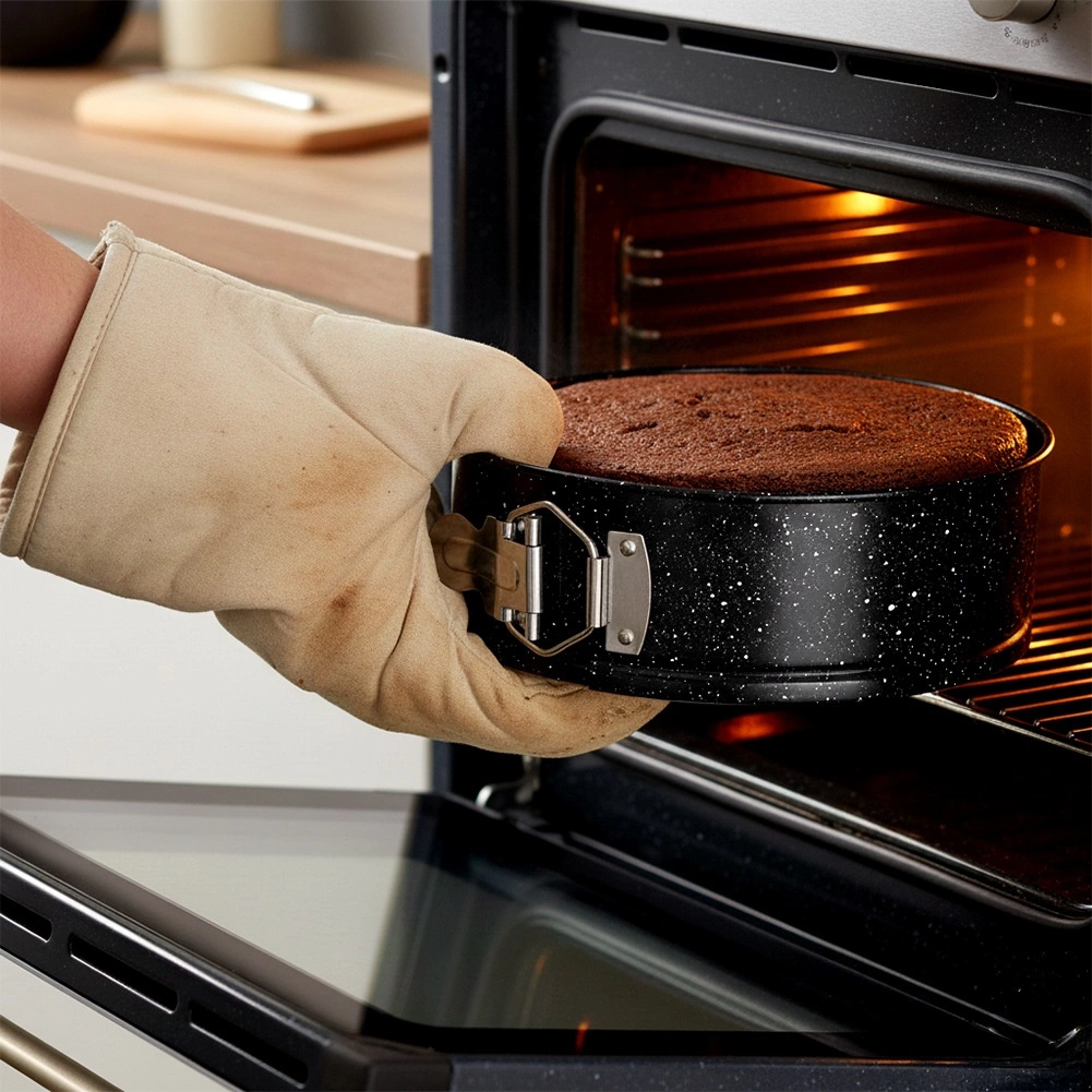 Praktična zaponka omogoča hitro odpiranje modela in varno odstranjevanje pečenega biskvita brez poškodovanja oblike.