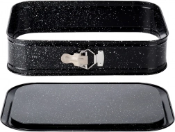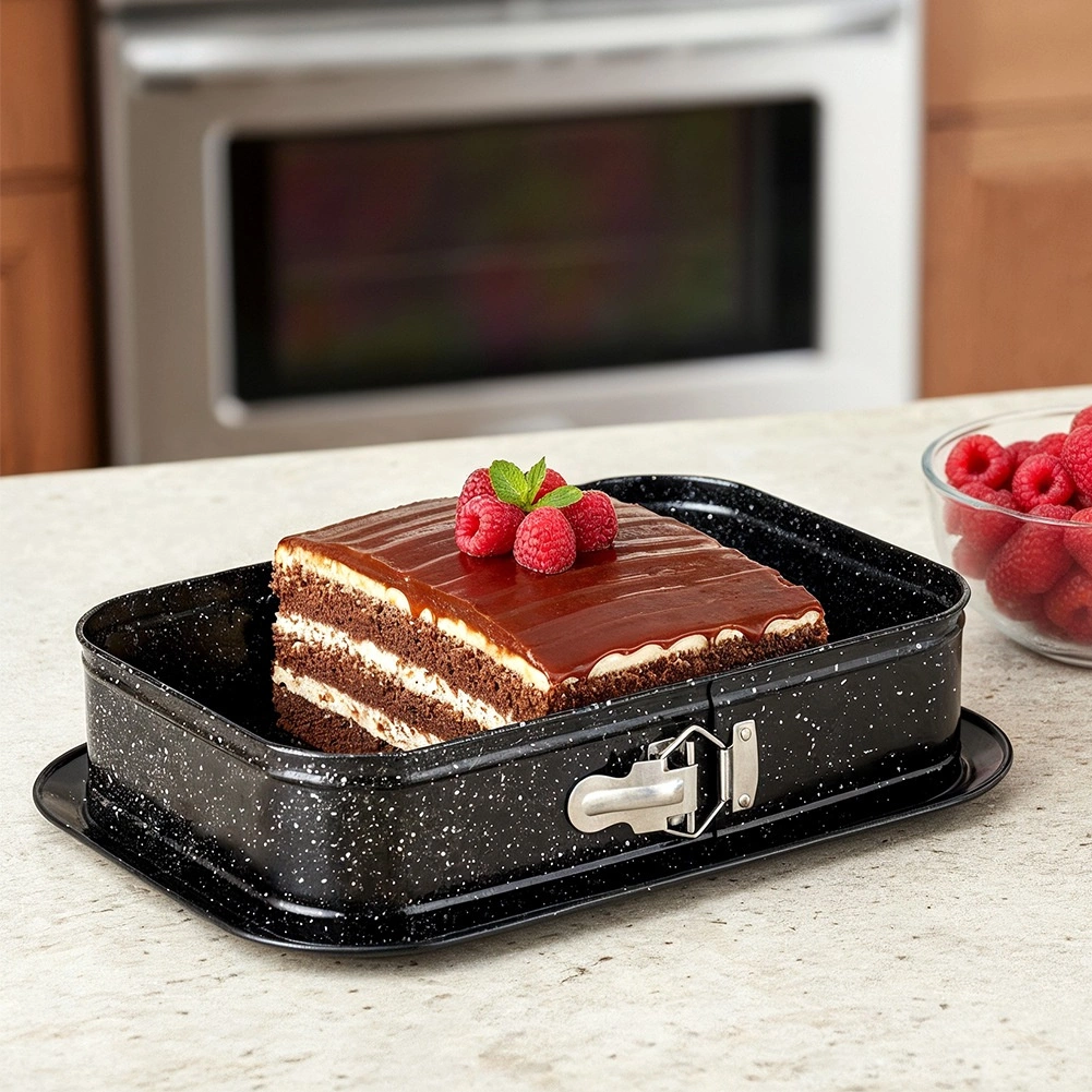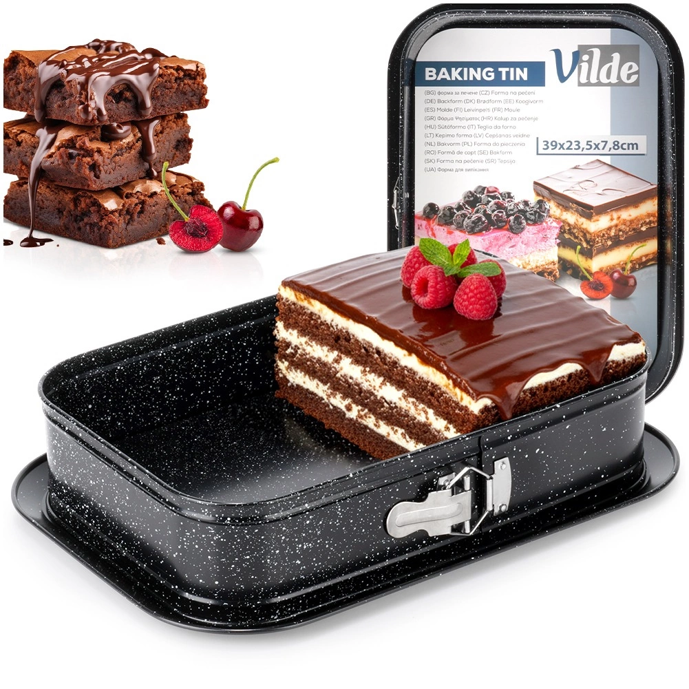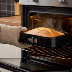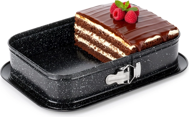 Pravokotni razpirni pekač je odlična izbira za vsakdanjo peko. Ogljikovo jeklo z granitno površinsko obdelavo zdrži temperature do 230 °C, ne vpija vonjav in zaradi odlične prevodnosti enakomerno porazdeljuje toploto. Razpirni bok in odstranljivo dno omogočata brezskrbno odstranjevanje tudi krhkih sladic brez poškodovanja oblike.