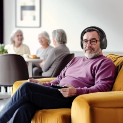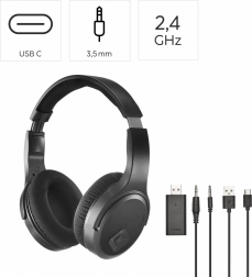 Brezžične slušalke za televizijo prinašajo čist in sinhroniziran zvok zahvaljujoč 2,4 GHz prenosu brez zakasnitve. Dovolj je, da v TV priključite USB-A ključek in slušalke se samodejno povežejo. Zaprta over-ear zasnova s pasivnim dušenjem hrupa izolira okolico in zagotavlja nemoten poslušalni užitek.