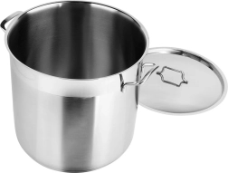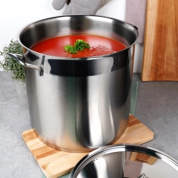Velikokapacitetni nerjavni lonec ANETT s prostornino 18 l in trdnim pokrovom je idealen za kuhanje juh, osnov in dušenje velikih porcij. Zahvaljujoč kakovostnemu jeklu 18/10, večplastnemu akutermičnemu dnu in združljivosti z vsemi vrstami štedilnikov, vključno z indukcijo zagotavlja hitro in enakomerno porazdelitev toplote. Robustne stene, udobni ročaji in enostavno vzdrževanje v pomivalnem stroju ga naredijo za zanesljivega pomočnika v domači in profesionalni kuhinji.