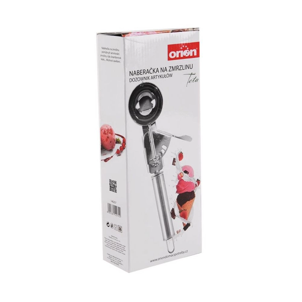 Zajemalka je univerzalna – poleg sladoleda zlahka ustvarite enakomerne porcije krompirjevega pireja ali riža. Zaradi odprtine za obešanje jo imate lahko vedno pri roki na kuhinjskem relingu ali shranjeno v predalu. Varna izvedba je zdravju neškodljiva in nevtralna do živil.