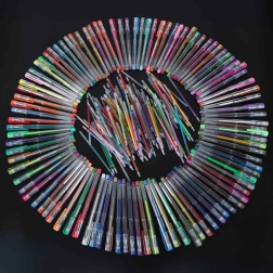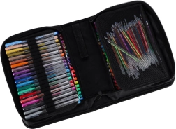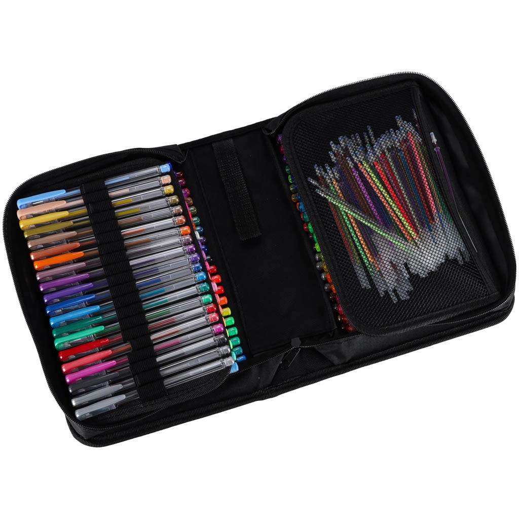 Odkrijte univerzalen set za šolo, pisarno in prosti čas: 100 gelnih pisal v bogati paleti barv in učinkov, poleg tega še 100 nadomestnih polnil. Pregleden zložljiv etui na zadrgo drži vsako pisalo na svojem mestu, zato imate vse barve vedno pri roki in varno shranjene.