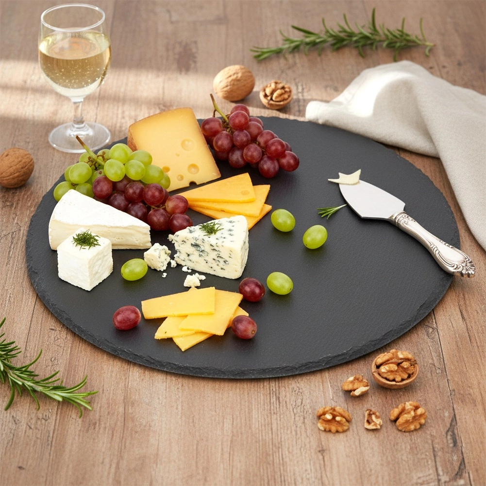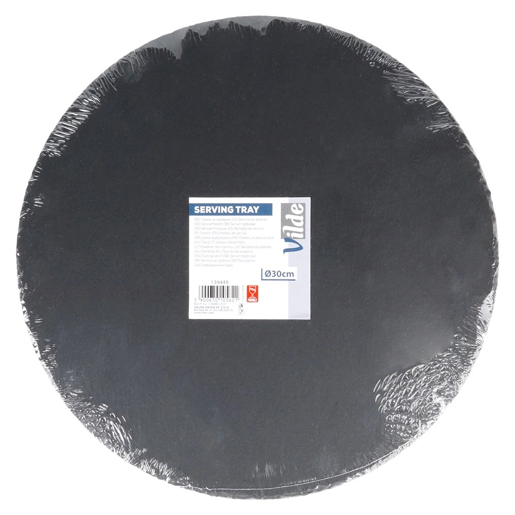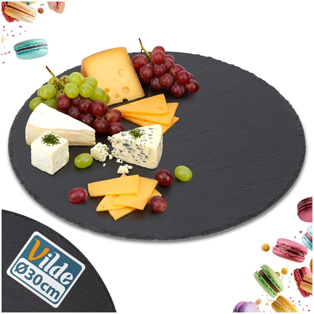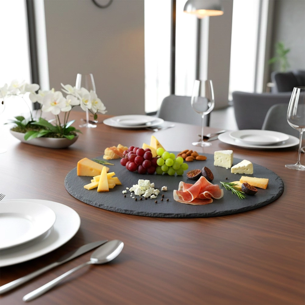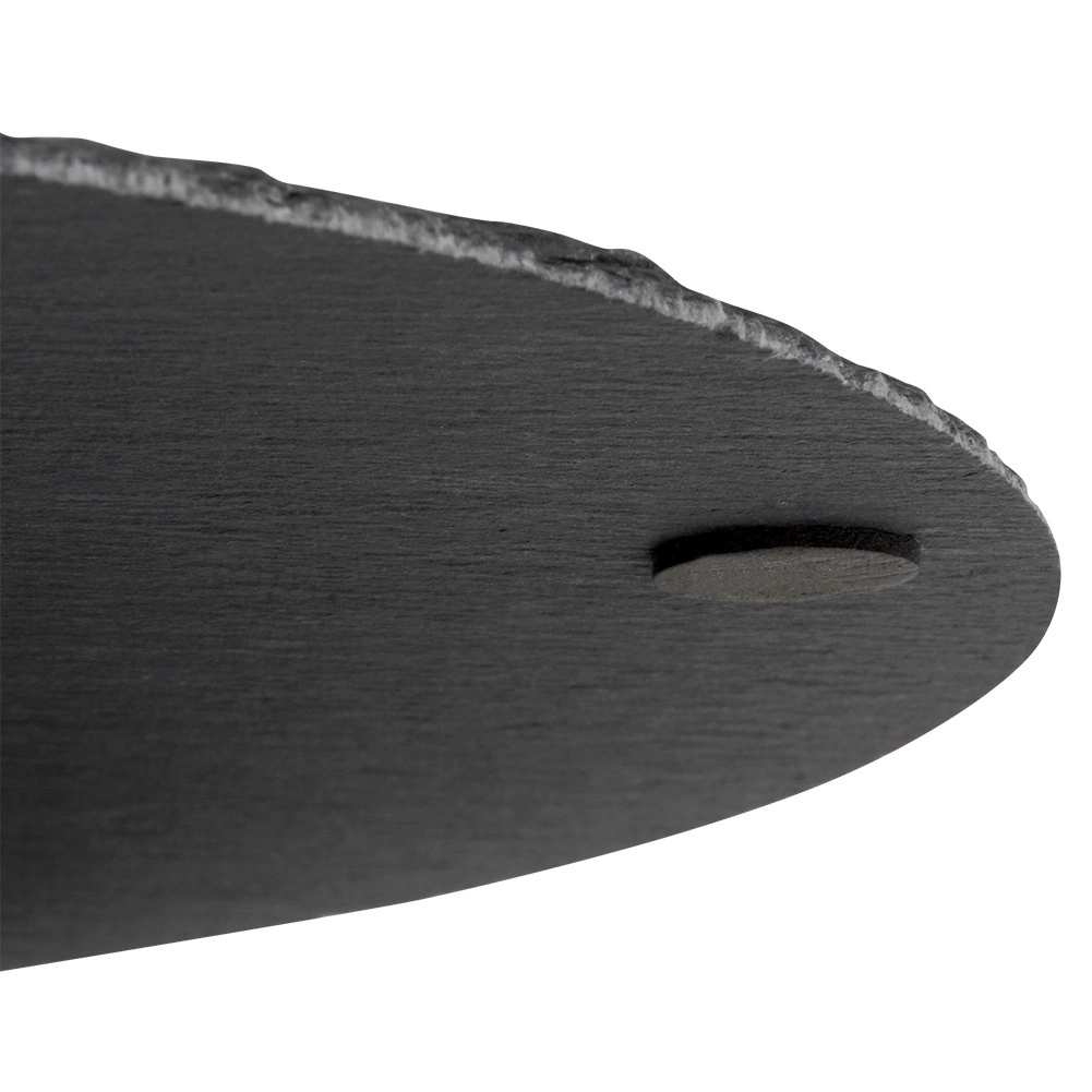 Ta okrogla skrilavčeva servirna deska prinaša na mizo naravno eleganco in funkcionalnost. Naravno črn skrilavec z nežno lomljeno strukturo in ročno obdelanimi robovi deluje atraktivno ter poudari servirane jedi. Zahvaljujoč protidrsnim nogicam ostaja stabilna in ščiti površino mize pred praskami.