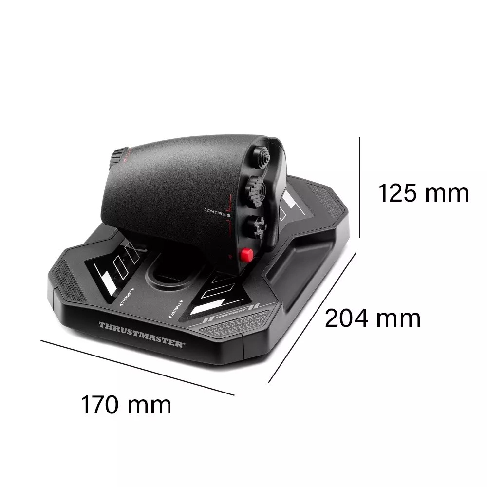 Sol-R 6 Throttle širi vaše kokpitne možnosti in povečuje realizem letenja. Z dolgim, gladkim hodom in nastavljivim zaskočnim mehanizmom preprosto preklapljate med režimi – ne glede na to, ali pilotirate civilno letalo, vojaški stroj ali vesoljsko plovilo. Kontrolniki so postavljeni tako, da vam ni treba spuščati glavne ročice, kar pospeši odzive in izboljša natančnost.