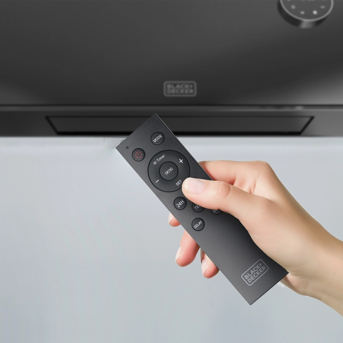 Upravljajte temperaturo, načine, oscilacijo in časovnik s kavča ali v kopalnici z priloženim daljinskim upravljalnikom. Pregleden LED zaslon prikazuje nastavitve.