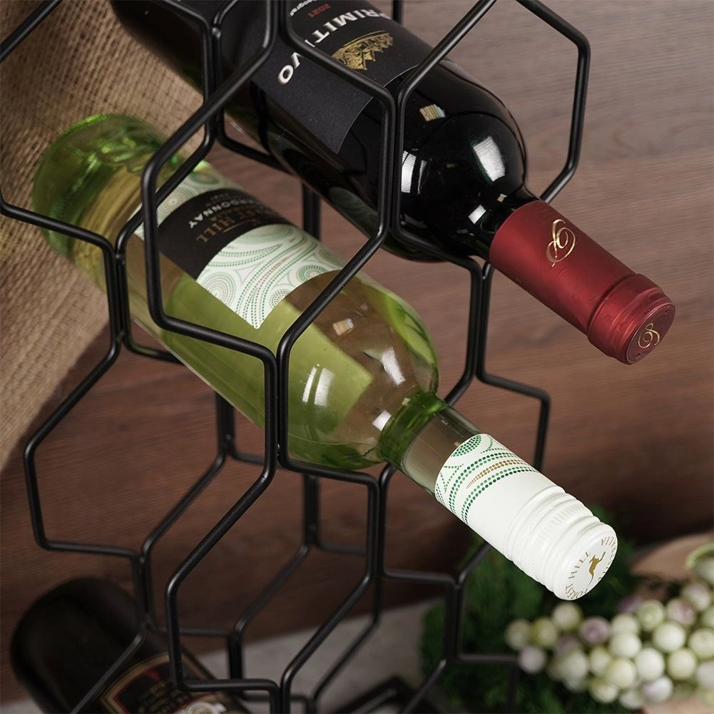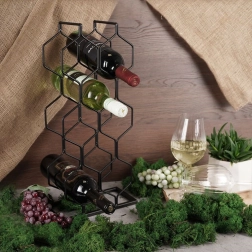 To moderno stojalo za vino s heksagonalno konstrukcijo sprejme do 8 steklenic in jih hrani vodoravno, da ostanejo zamaški naravno navlaženi. Minimalističen dizajn v črni barvi se zlahka kombinira z različnimi slogi notranje opreme – od moderne kuhinje do domačega bara.