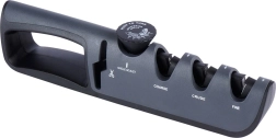 Štiri brusne cone vam omogočajo postopno delo: Coarse za obnovo močno topih robov, Crude za klasično ostrenje, Fine (keramika) za fino doostritev in končno poliranje ter ločena diamantna cona za škarje. Kompaktne dimenzije olajšajo shranjevanje tudi v kuhinjskem predalu, orodje pa je kljub temu vzdržljivo in lahko za vsakodnevno uporabo.