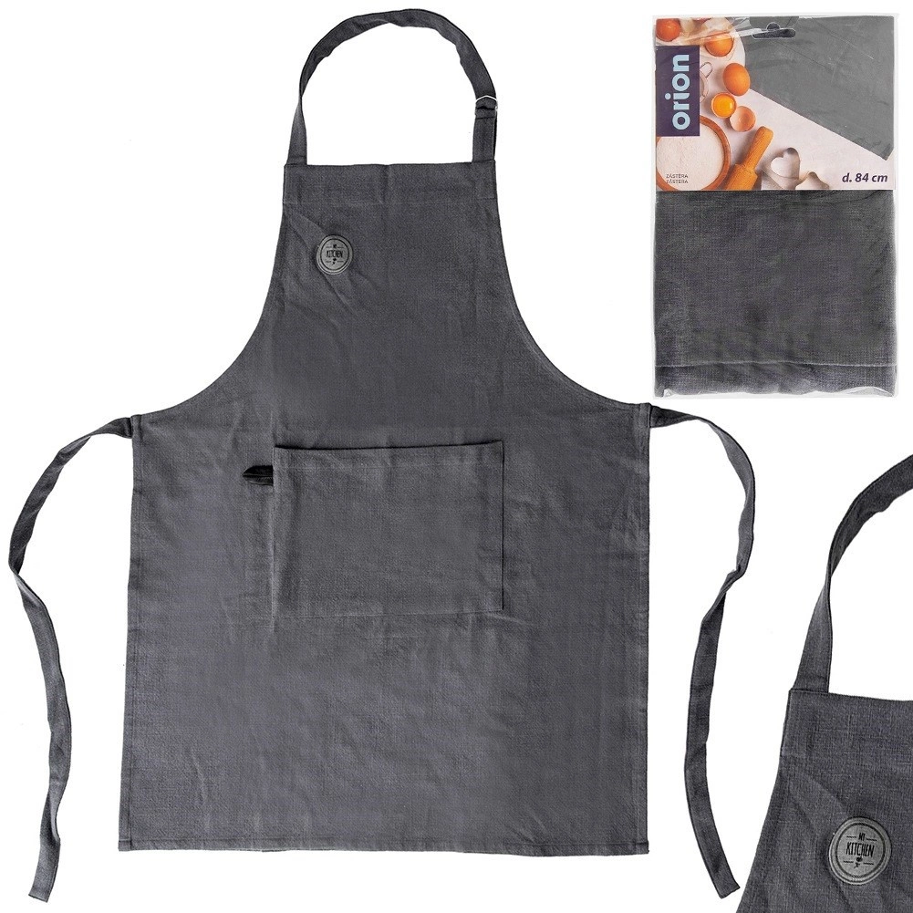 Ta vzdržljiv bombažni predpasnik je idealna izbira za vsakodnevno kuhanje, pečenje in delo v delavnici ali ateljeju. Univerzalni kroj pristaja ženskam in moškim, temno siva barva pa deluje elegantno in praktično. Nastavljiv trakec za vrat z zaponko omogoča hitro in udobno nastavitev dolžine, medtem ko dolge vrvice v pasu poskrbijo za zanesljivo zavezovanje.