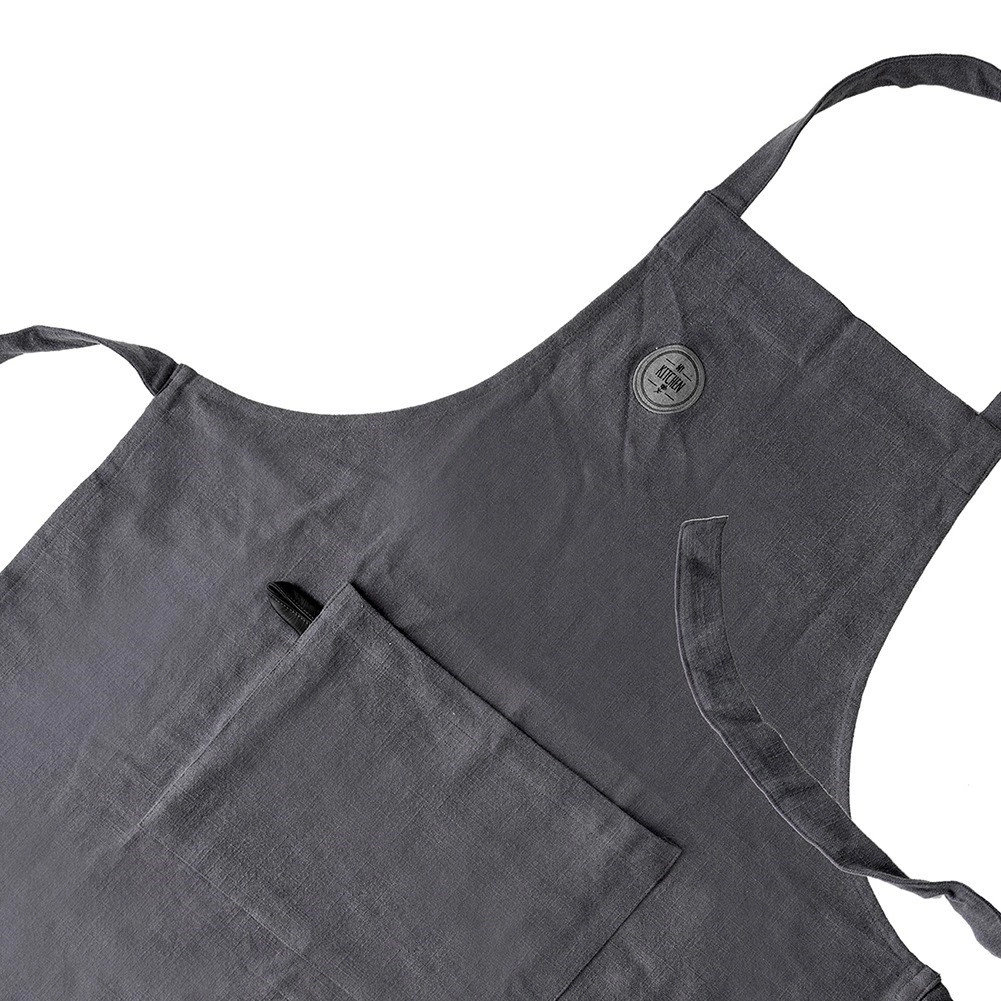 Prijeten in čvrst bombažni material v temno sivem odtenku je mogoče prati do 40 °C, zato bo predpasnik dolgo ostal kot nov.