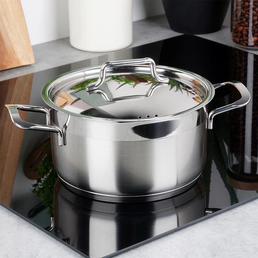 Priložen je natančno prilegajoč se jeklen pokrov z odzračevalnimi odprtinami za nadzorovan izpust pare. Udobni stranski ročaji olajšajo rokovanje, ne glede na to, ali kuhate juhe, omake ali dušite zelenjavo in meso. Lonec je primeren za plin, elektriko, steklokeramiko in indukcijo ter je primeren za pomivanje v pomivalnem stroju.