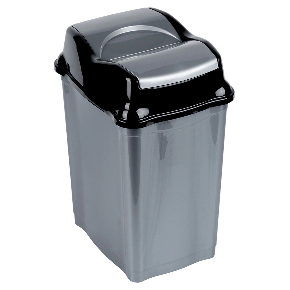Koš je izdelan iz kakovostne, odporne plastike v elegantni sivi barvi s sijočim črnim pokrovom. Gladke površine se preprosto čistijo, koš pa je lahek in stabilen, primeren za domačo in komercialno rabo.
