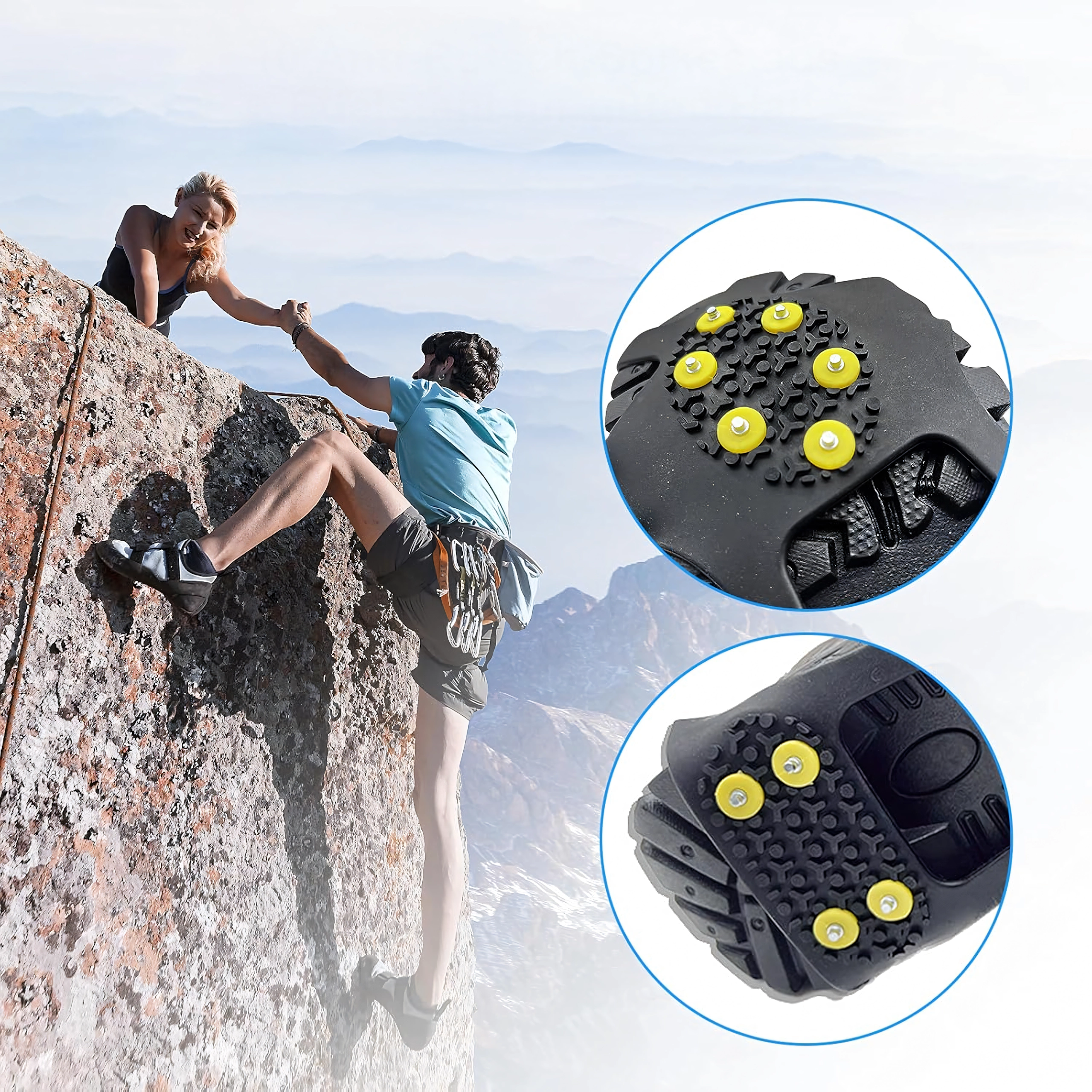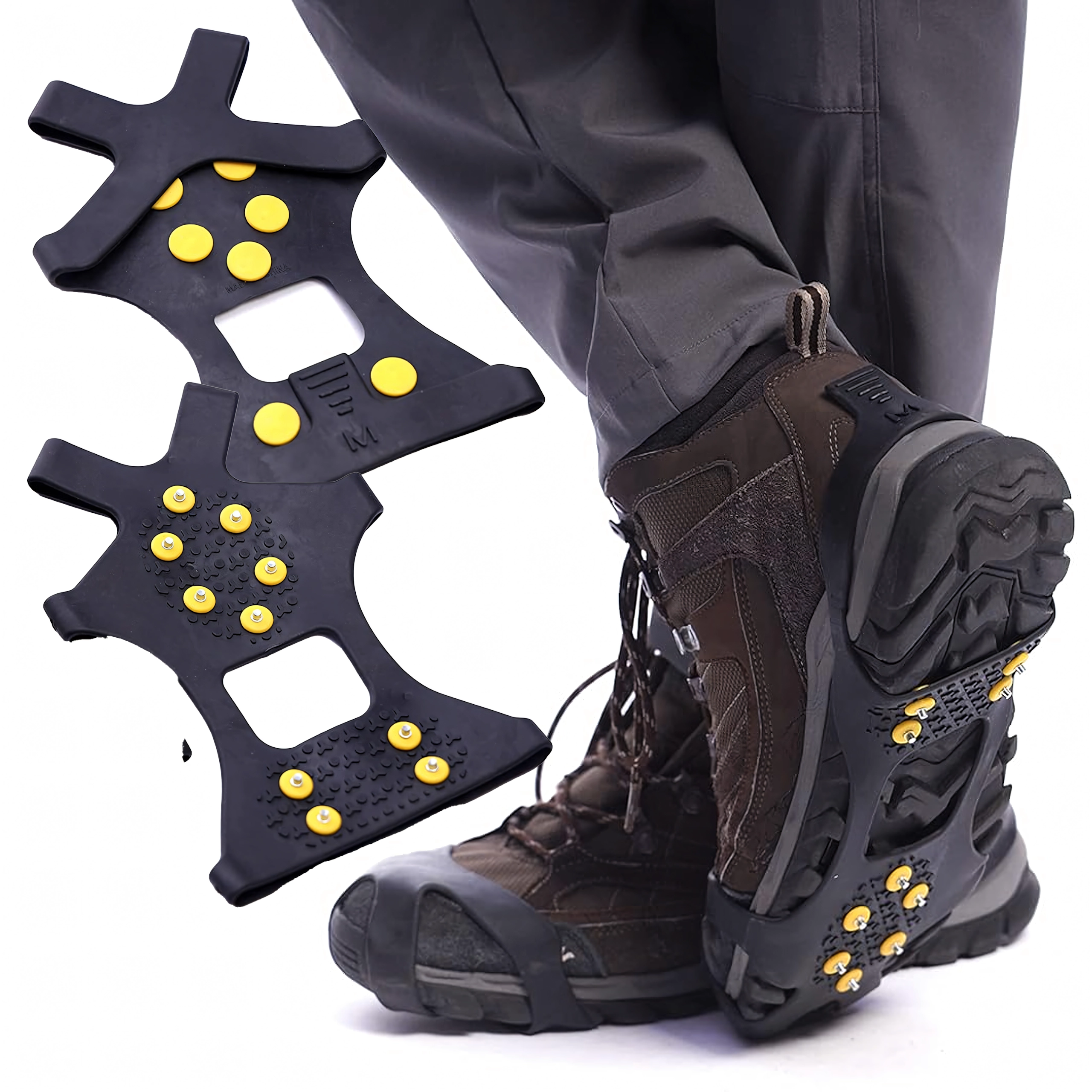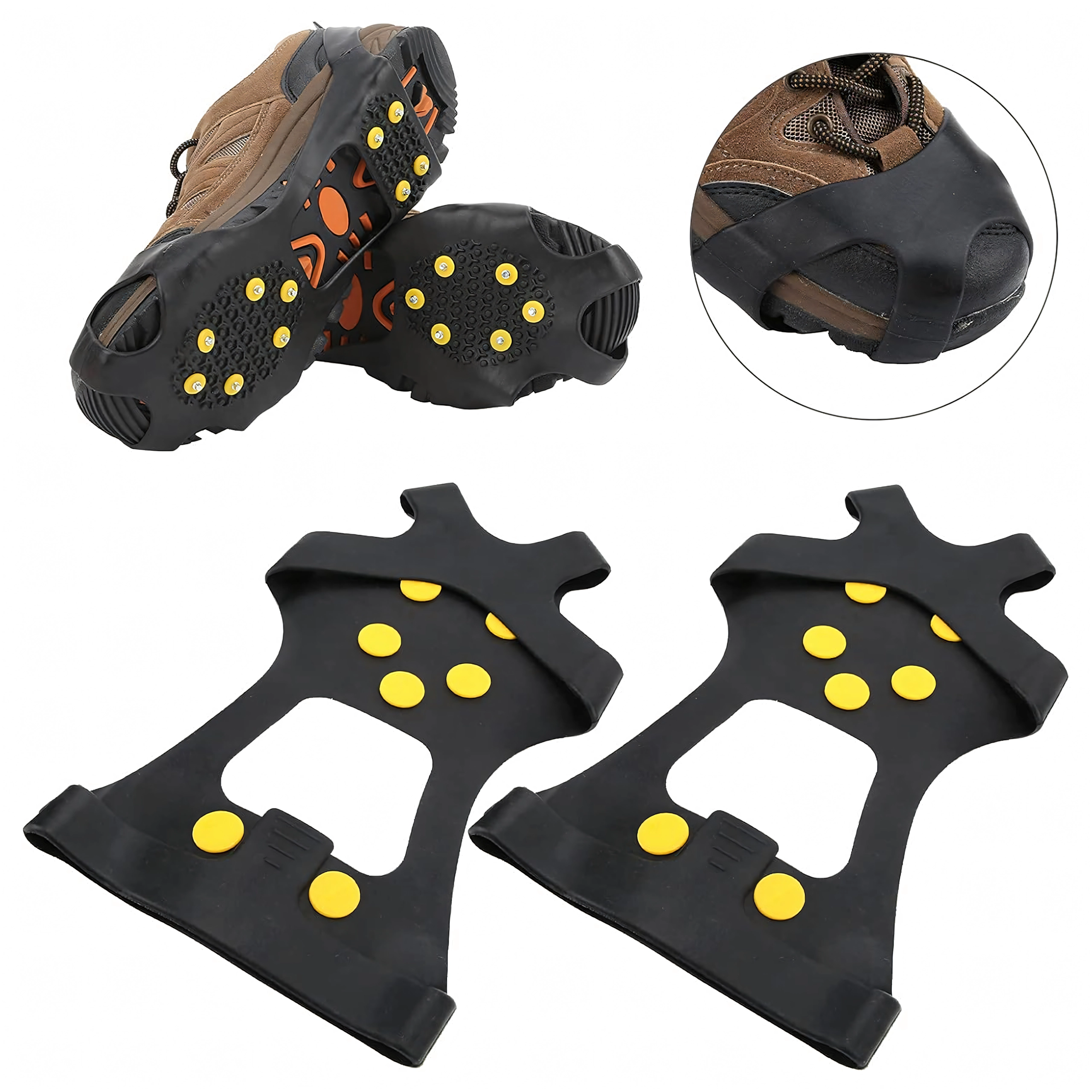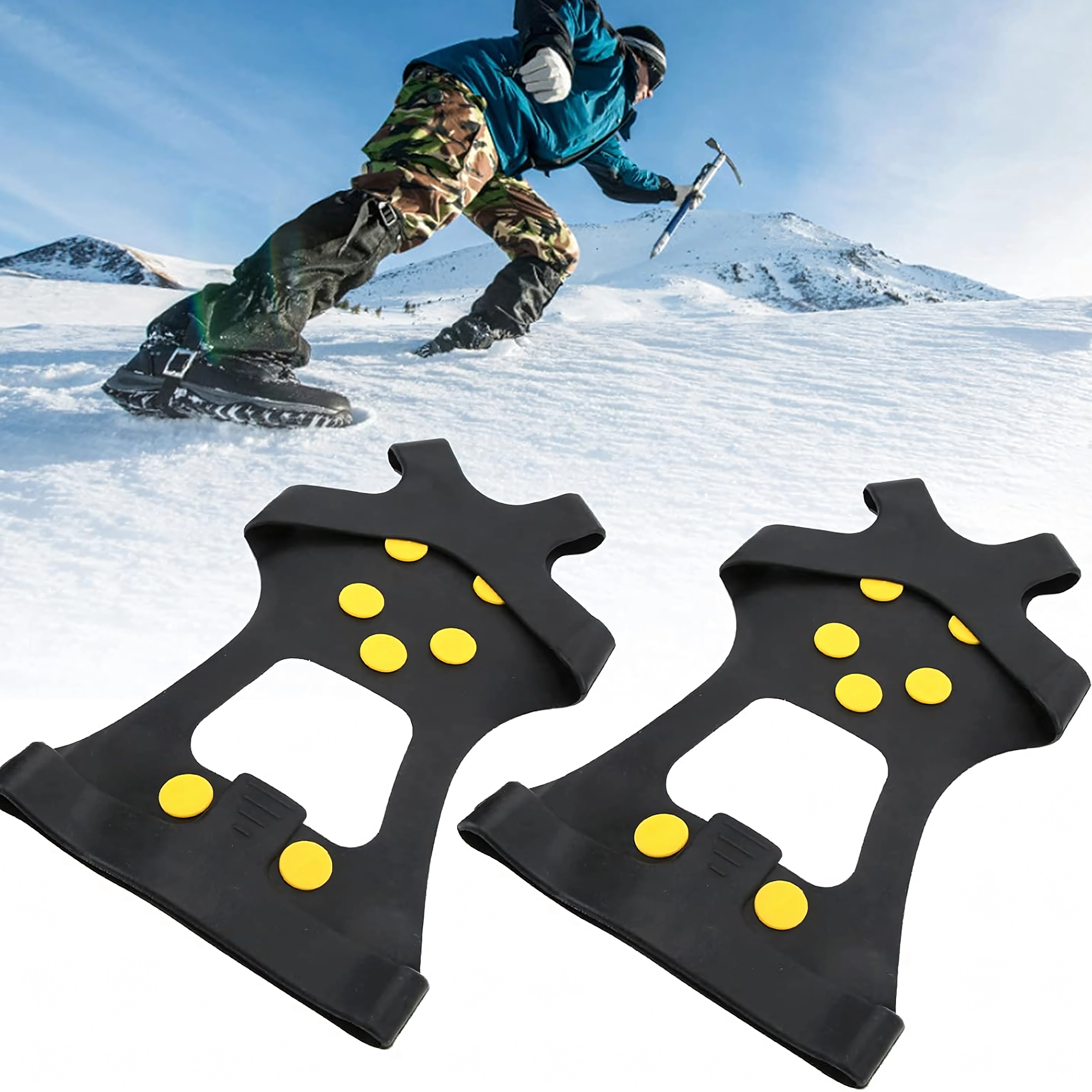 Zanesljivi neslipni nastavki za čevlje s kovinskimi konicami za varen korak na snegu, ledu in blatu. Izdelani iz odporne TPE gume in kovine, ponujajo odličen oprijem, stabilnost in enostavno namestitev. 10 kovinskih konic zagotavlja zanesljiv korak na vsakem terenu, nastavki so lahki, elastični in kompaktni – idealni za pohodništvo, delo na terenu in vsakodnevno zimsko hojo.