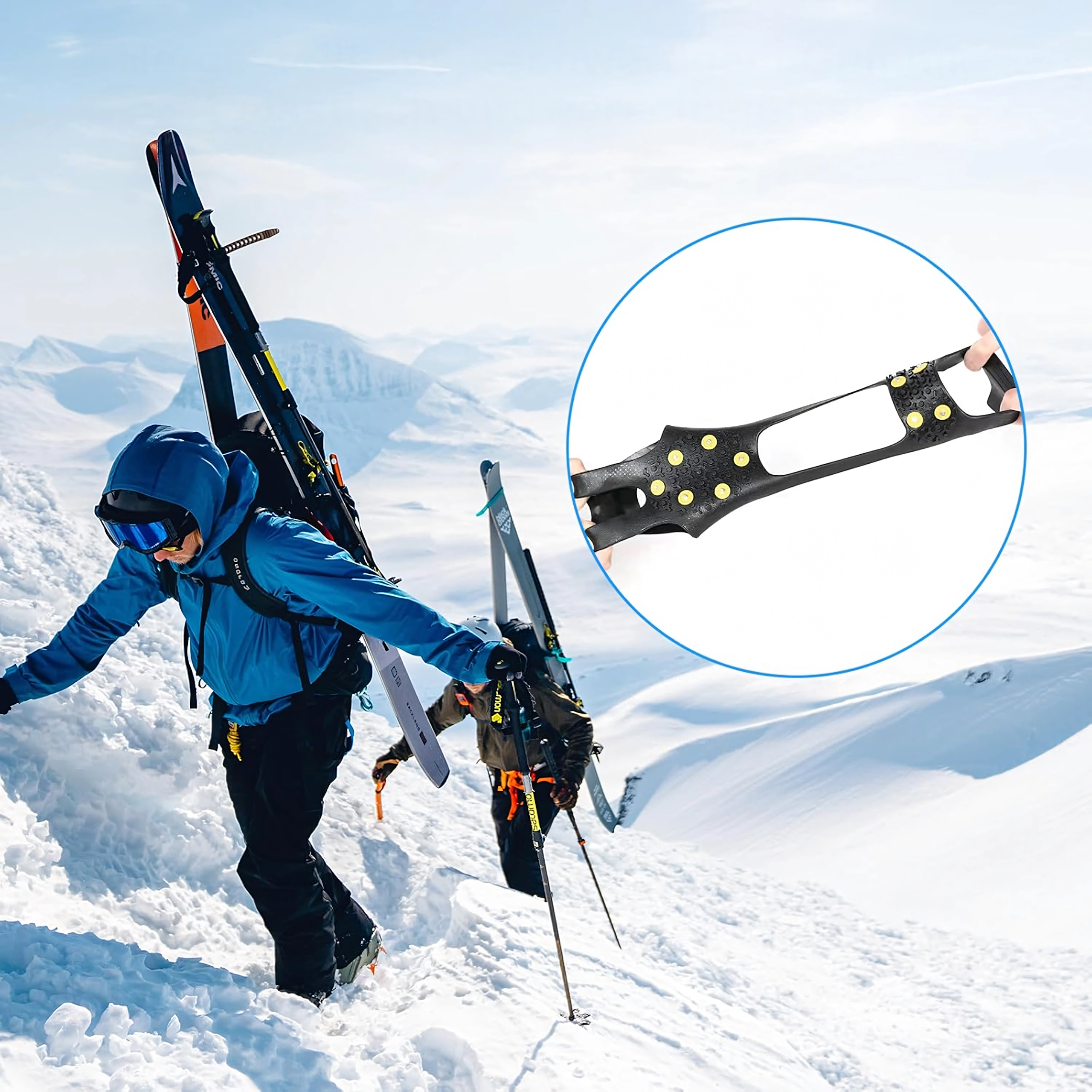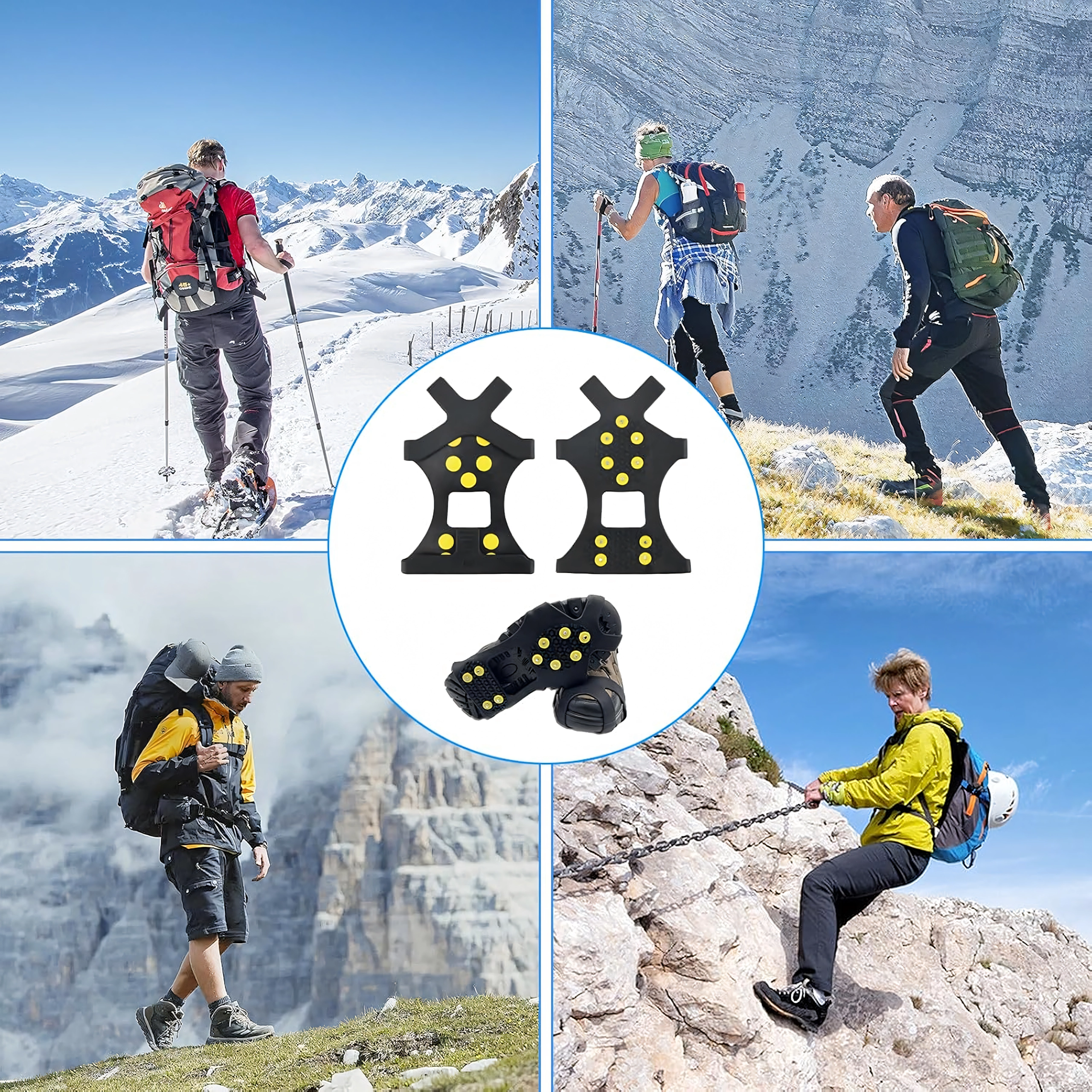 Zaradi nizke teže in kompaktnih mer jih lahko imate vedno pri sebi v nahrbtniku ali žepu. Odlično se obnesejo pri zimskem pohodništvu, vsakodnevnemu premikanju po mestu in delu na terenu. Ena velikost pokriva razpon EU 42–48, zato so primerni za večino pohodniških in delovnih čevljev.
