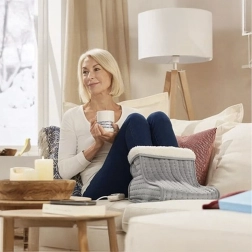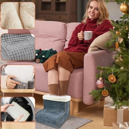 Električni grelnik za stopala je zasnovan za maksimalno udobje med počitkom pred televizijo, pri delu za mizo ali na kavču. Mehak plišast notranji del s prijetno podlogo enakomerno porazdeli toploto in pomaga hitro ogreti hladna stopala. Intuitiven upravljalnik z zaslonom omogoča natančno nastavitev temperature in časa gretja za varno in brezskrbno uporabo.