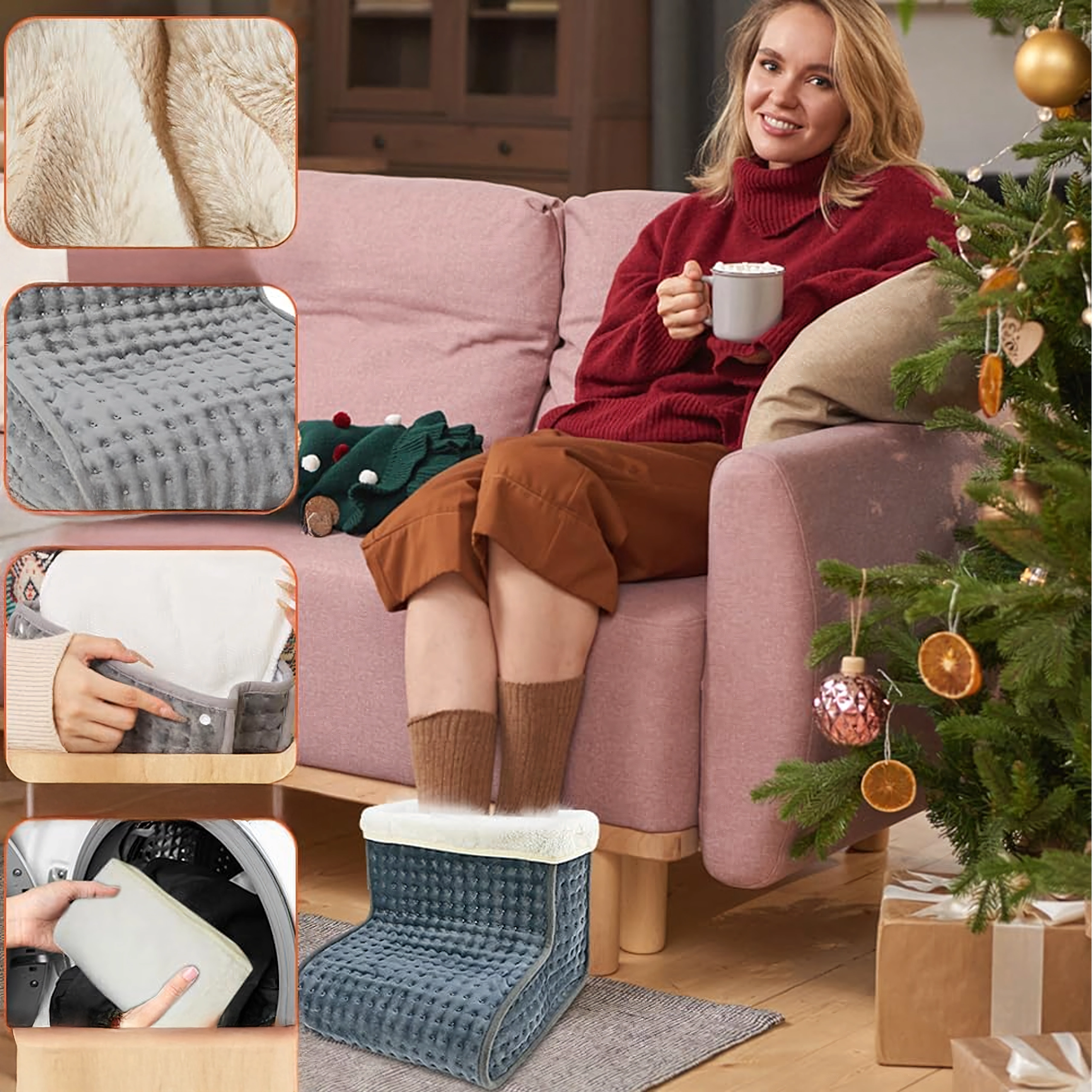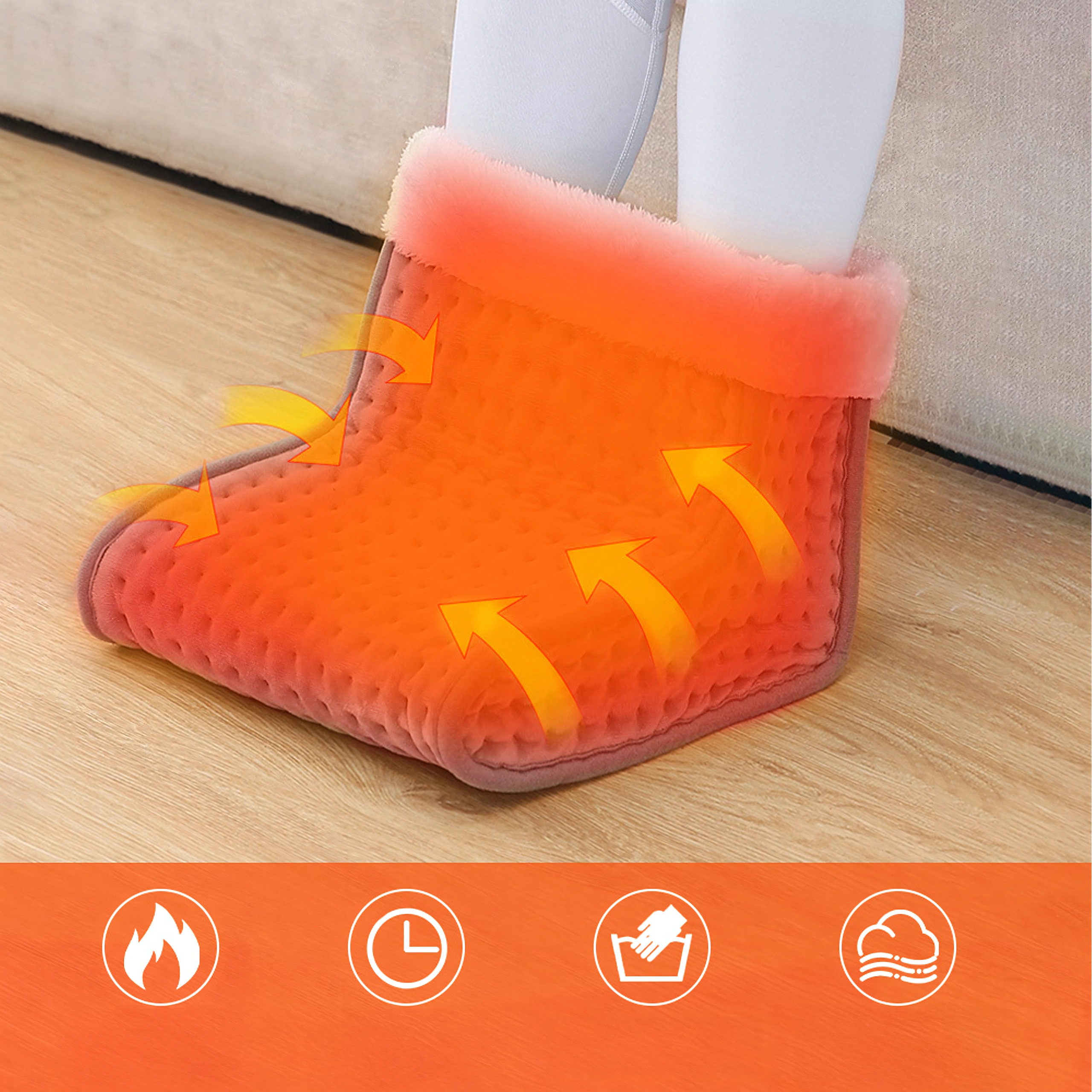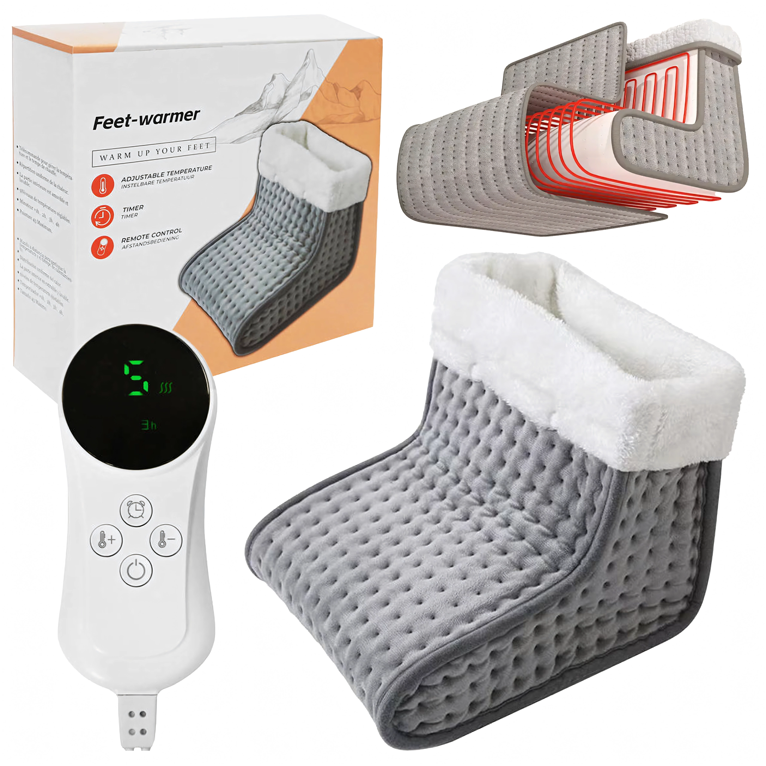 Konec hladnih stopal! Ta mehak električni grelnik za stopala ponuja hitro toploto, 9 stopenj temperature (30–70 °C) in časovnik z avtomatskim izklopom (60–240 min). Z preglednim daljinskim upravljalnikom preprosto nastavite idealno udobje za dom ali pisarno.