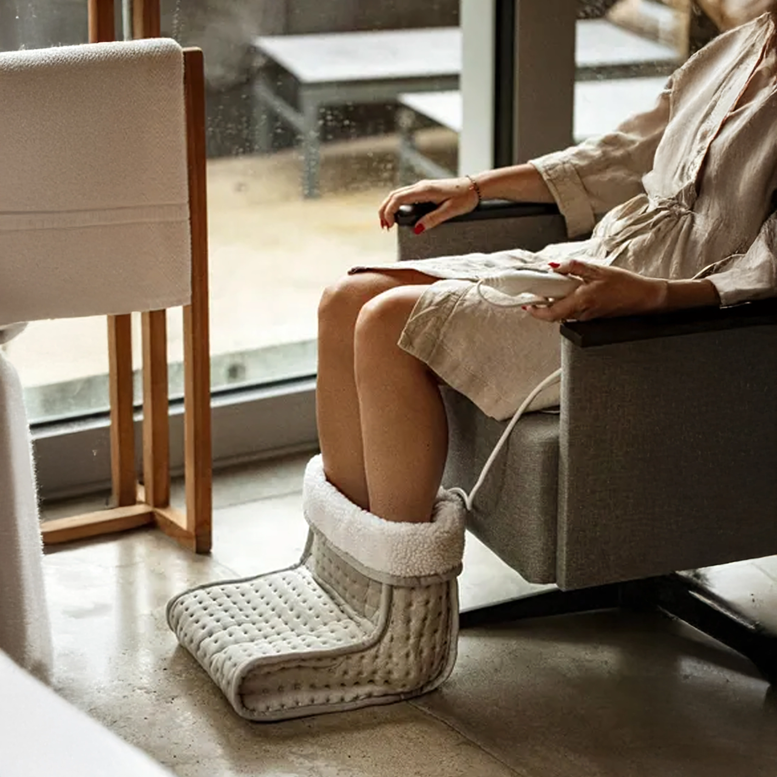 Z 9 stopnjami gretja si izberete točno takšno toploto, kot jo potrebujete – od nežnega ogrevanja do intenzivnega segrevanja po vrnitvi iz mraza. Časovnik (60–240 min) z avtomatskim izklopom povečuje varnost in varčuje z energijo. Zasnova za obe stopali, mehko oblazinjenje in zračni materiali zagotavljajo udobje tudi pri daljšem sedenju.