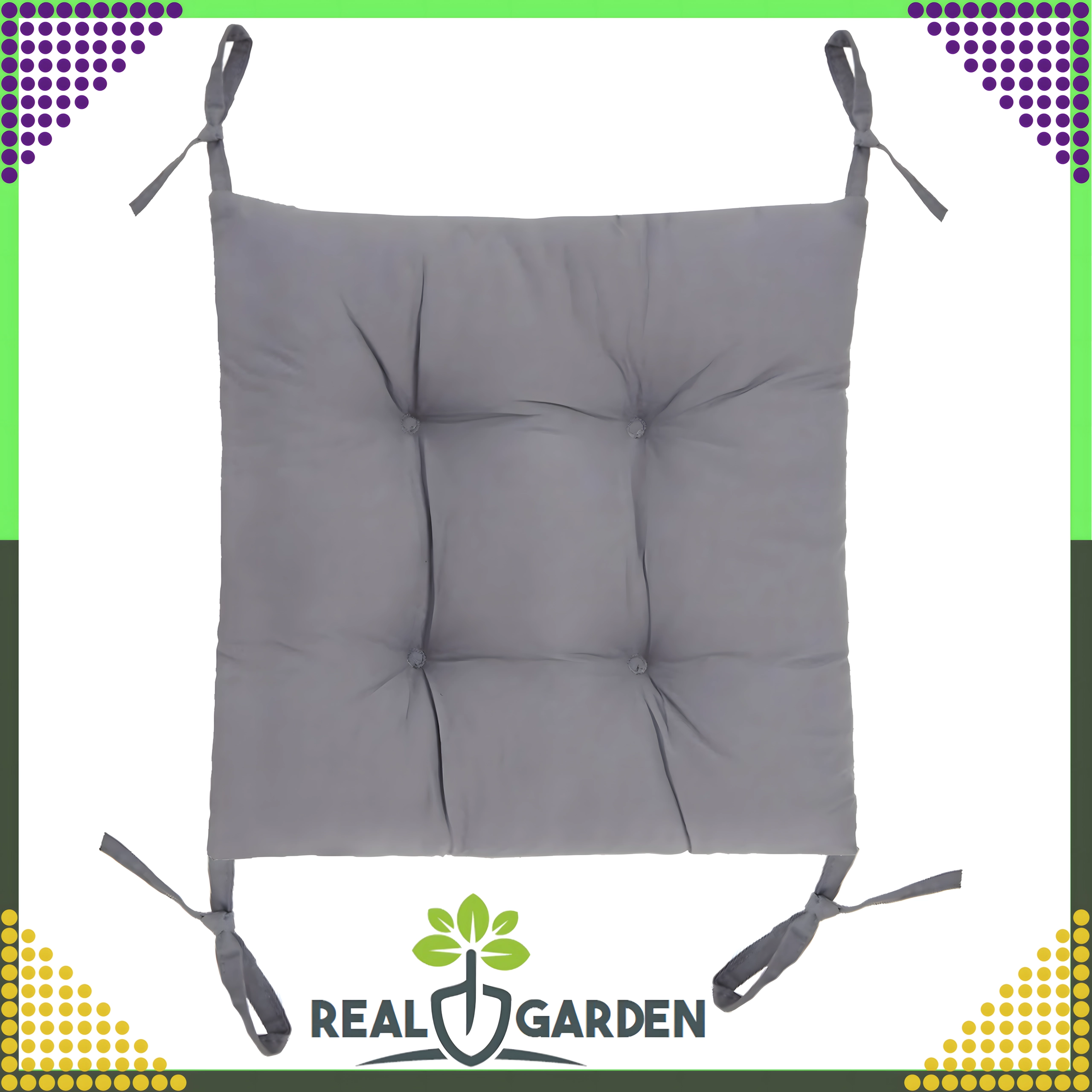 Udobna in trpežna blazina za stol z merami 40 × 40 × 8 cm za kuhinjo, dnevno sobo in vrt. Zahvaljujoč vezalnim trakom ostane na mestu, penasto polnilo ohranja obliko, prijetna prešita tkanina pa zagotavlja udobno sedenje.