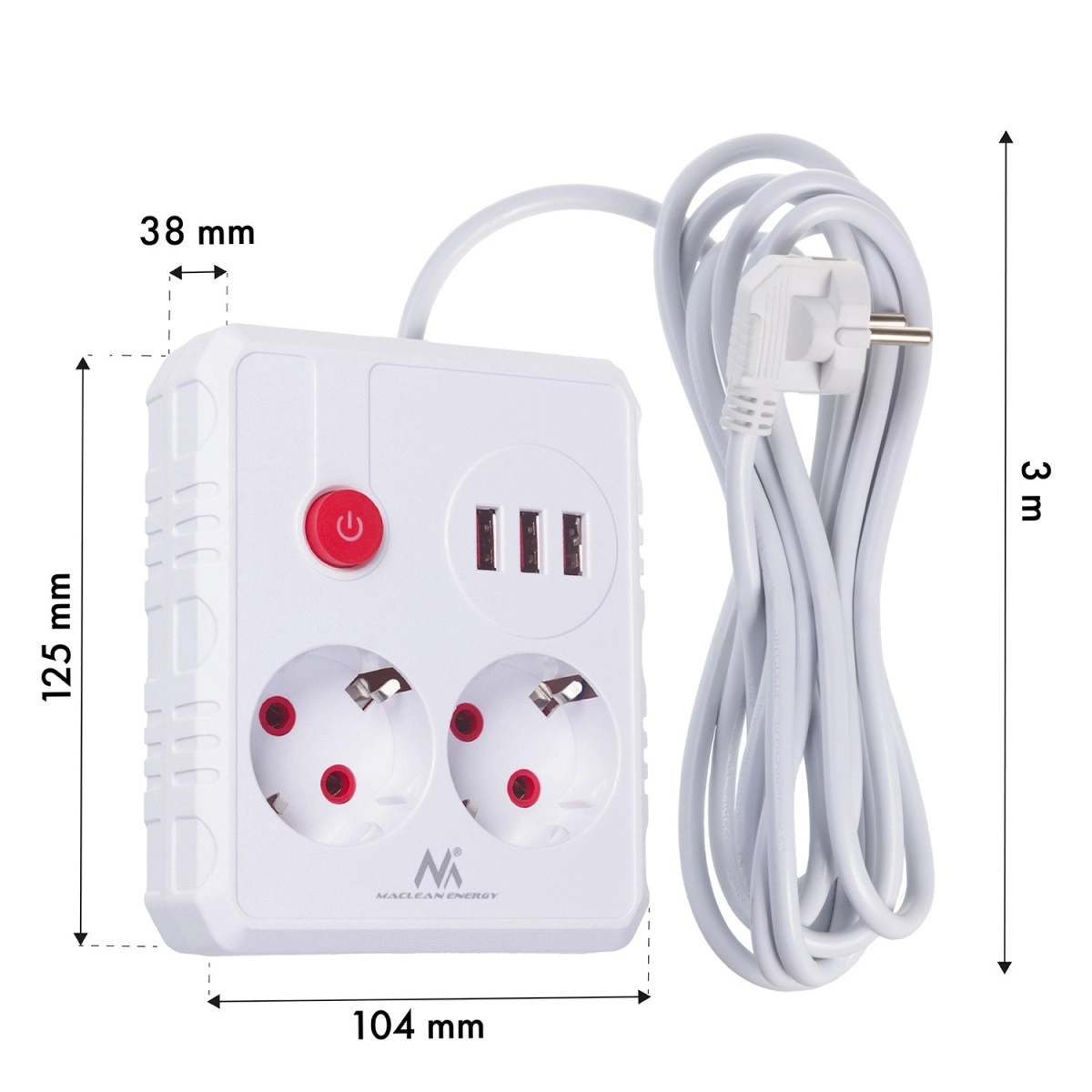Ta sodoben napajalni razdelilec združuje klasični vtičnici s tremi USB priključki, zato lahko enostavno priključite namizno svetilko, prenosnik ali televizor ter hkrati napolnite telefon ali slušalke – brez dodatnih adapterjev. Zaradi kompaktnih mer in čiste bele izvedbe se poda v vsak interier.