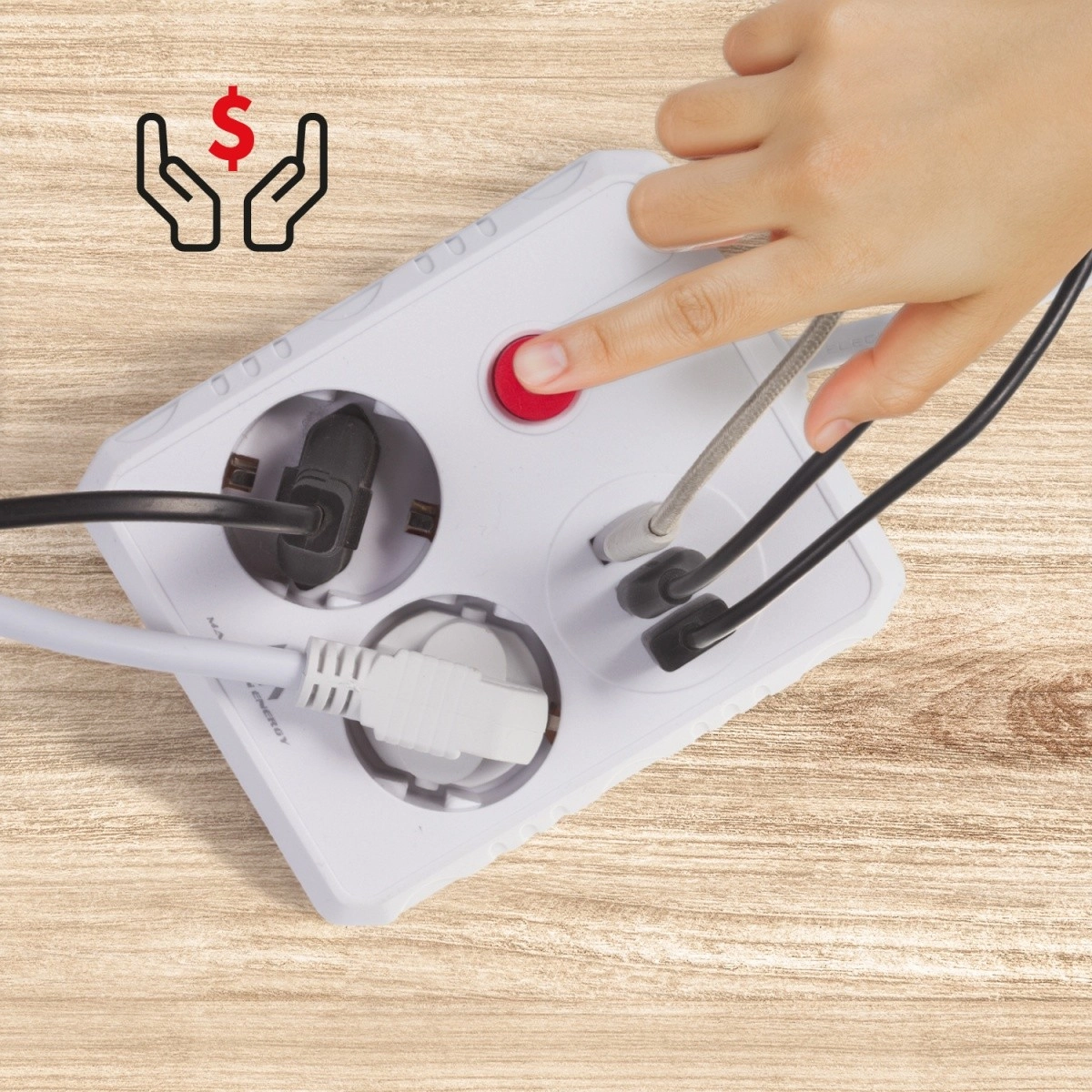 Praktično glavno stikalo omogoča z enim pritiskom odklop vseh naprav. Dolg 3 m kabel olajša postavitev razdelilca tam, kjer ga potrebujete.