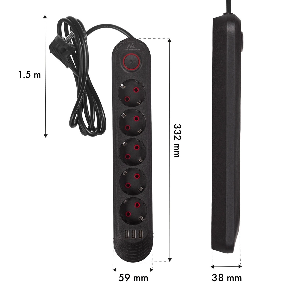 Vgrajeno glavno stikalo olajša popolno izklapljanje priključenih naprav. Proti-zdrsna obdelava in kakovostni materiali prispevajo k dolgi življenjski dobi in varni uporabi.