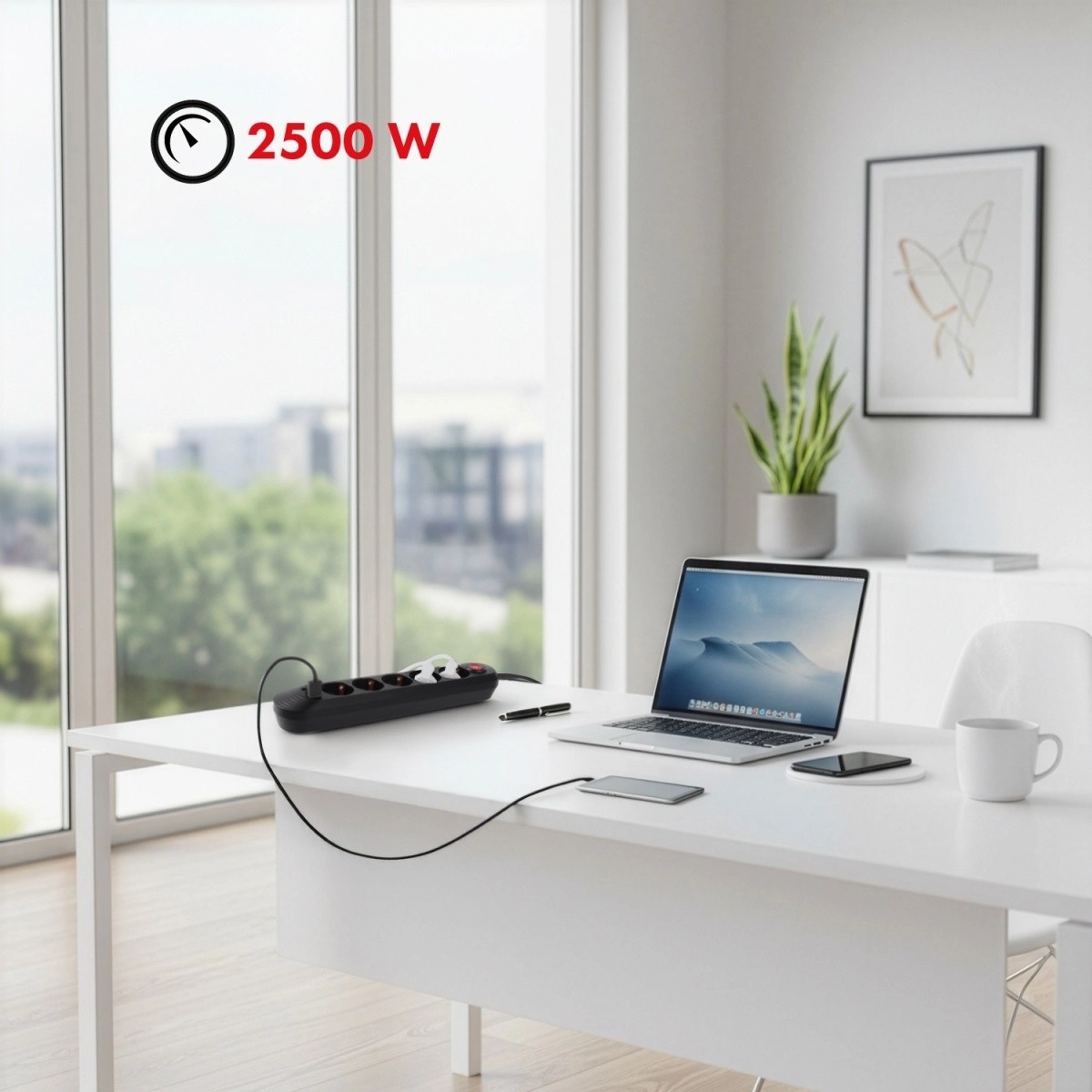 Ta kompaktni in trpežni napajalni razdelilec združuje klasične vtičnice z vgrajenim USB polnjenjem, zato prihranite prostor in adapterje. Širok razpon vhodne napetosti 110–240 V AC (50/60 Hz) zagotavlja zanesljivo delovanje v različnih pogojih, največja obremenitev 2500 W pa pokrije večino običajnih naprav.