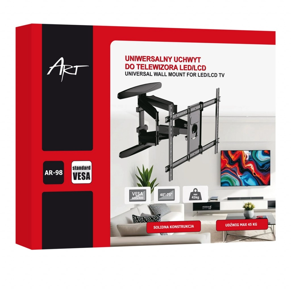 Ta robusten zgibni nosilec za TV je zasnovan za moderne LCD/LED zaslone z diagonalo 40–75". Zaradi visoke nosilnosti 45 kg in široke podpore standardov VESA 200×200 do 600×400 zanesljivo nosi večino televizorjev vodilnih znamk. Premišljena konstrukcija omogoča udobno nastavljanje nagiba, vrtenja in izvleka za popoln zorni kot v katerem koli prostoru.