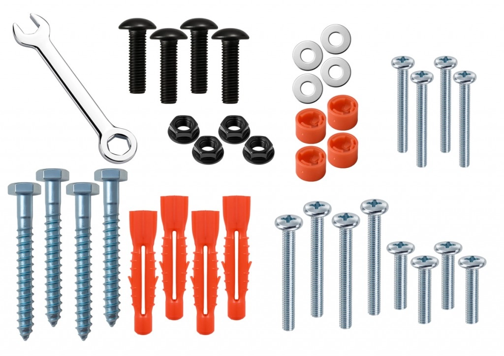 Vključuje komplet vijakov, vložkov, podložk in ključ – vse, kar potrebujete za varno in čisto pritrditev na steno.