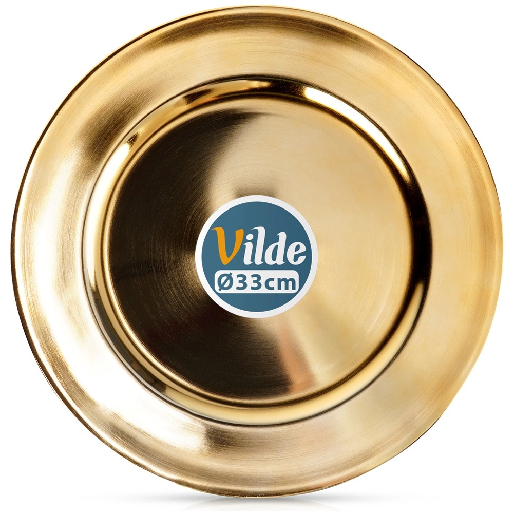 Eleganten zlati podkrožnik s premerom 33 cm doda vašemu pogrinjku luksuzen videz, zaščiti prt in mizo ter poudari serviranje. Izdelan je iz kakovostnega materiala z visokim sijajem, enostaven za čiščenje in odličen za praznične pogrinjke, poroke in družinska praznovanja.